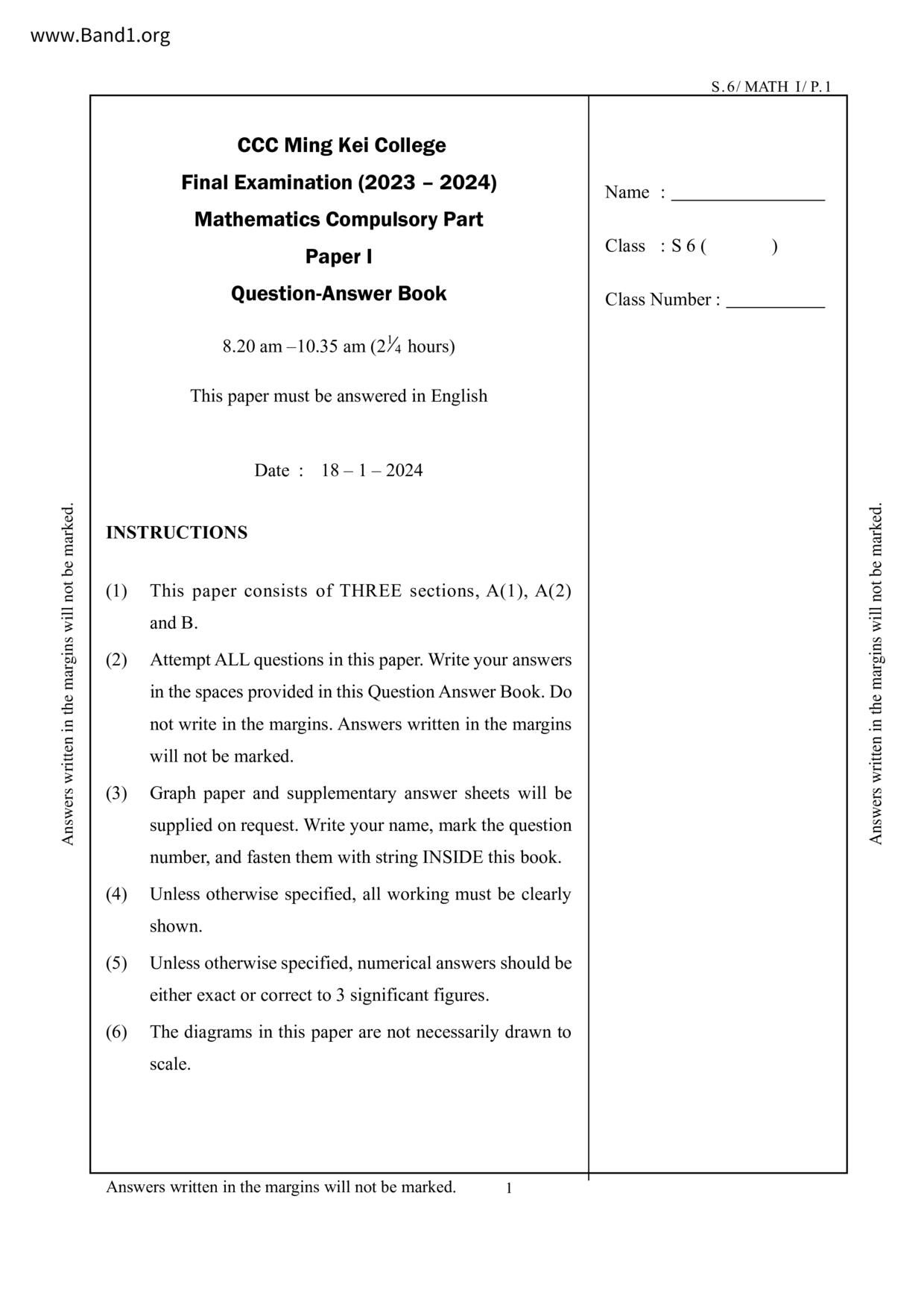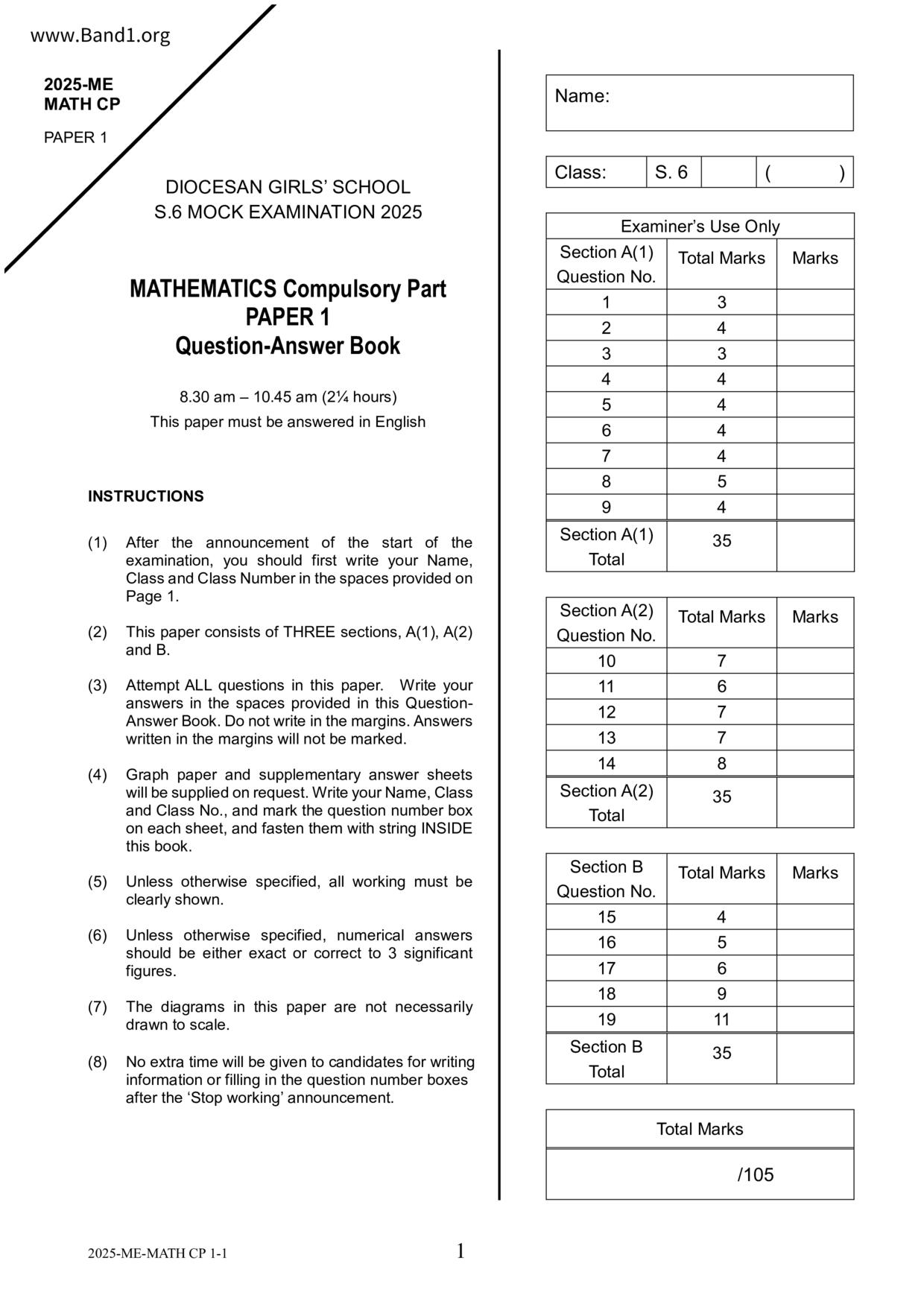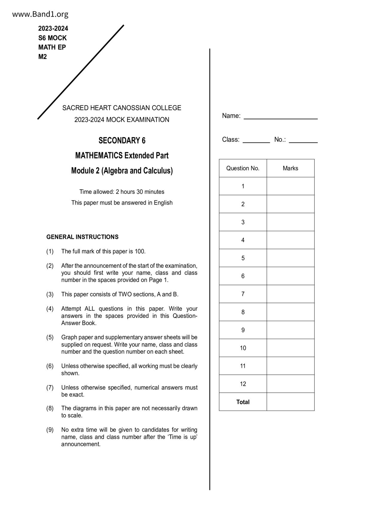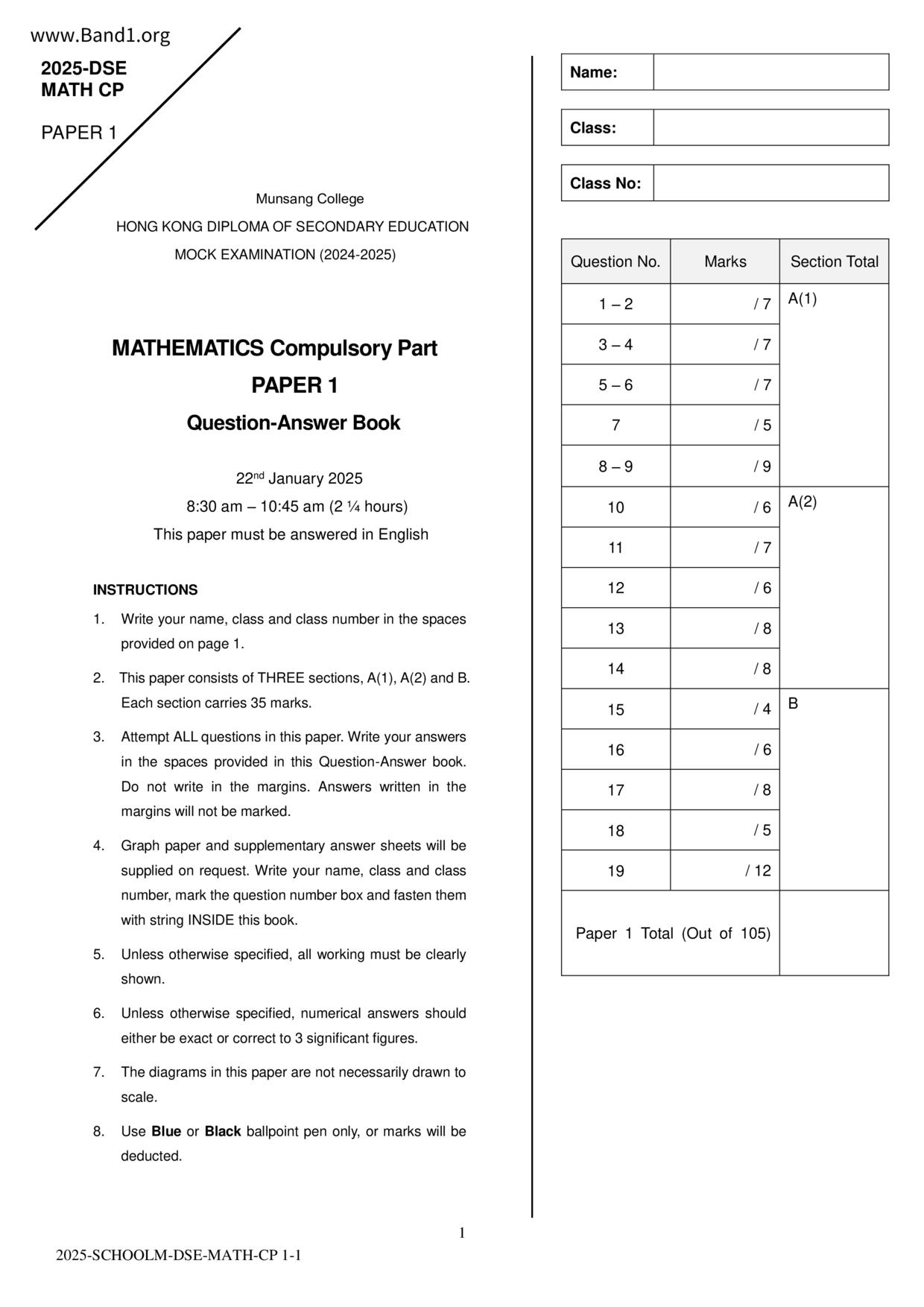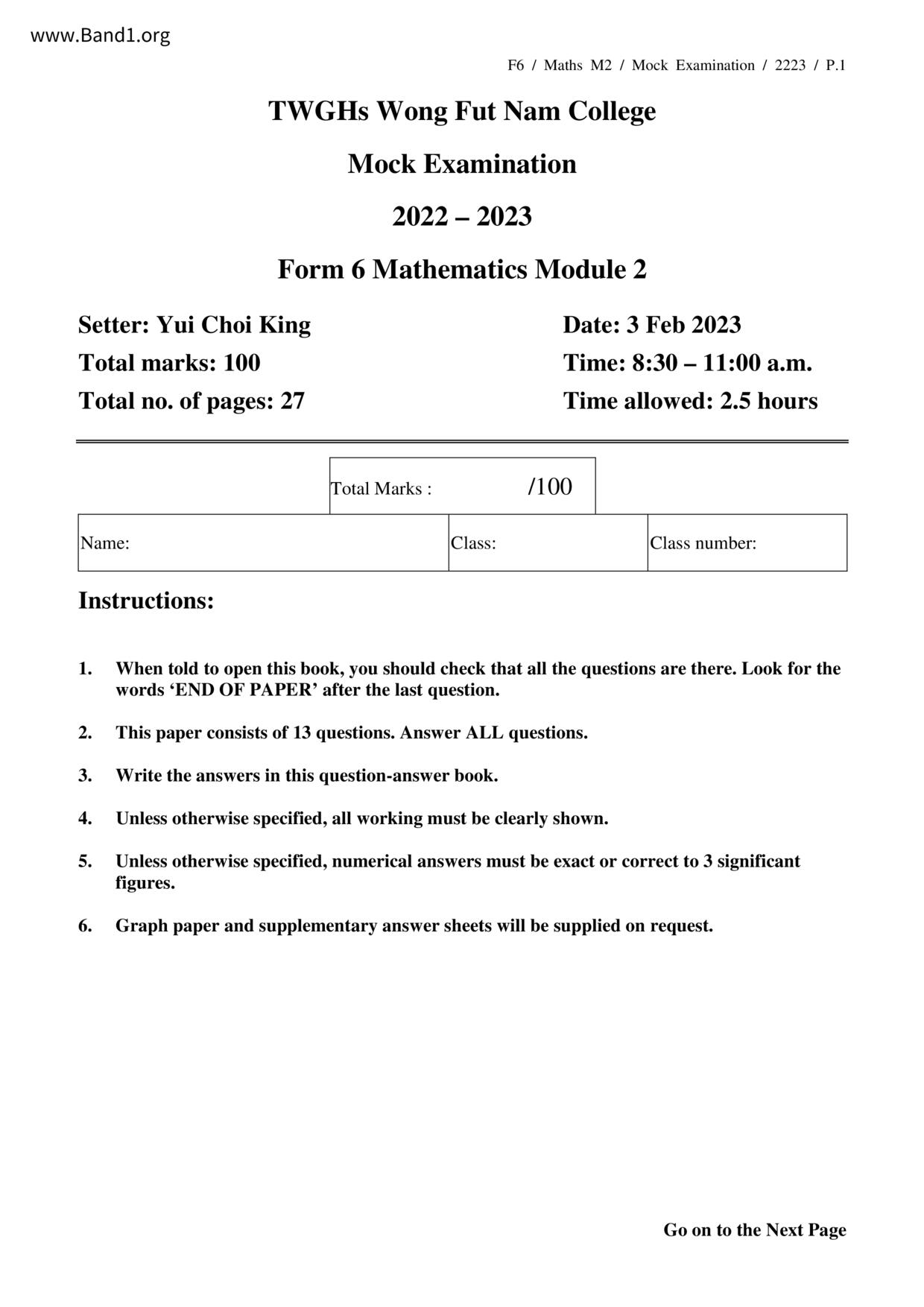 香港 中六 各科 (HK F6 maths) 試卷 pdf
