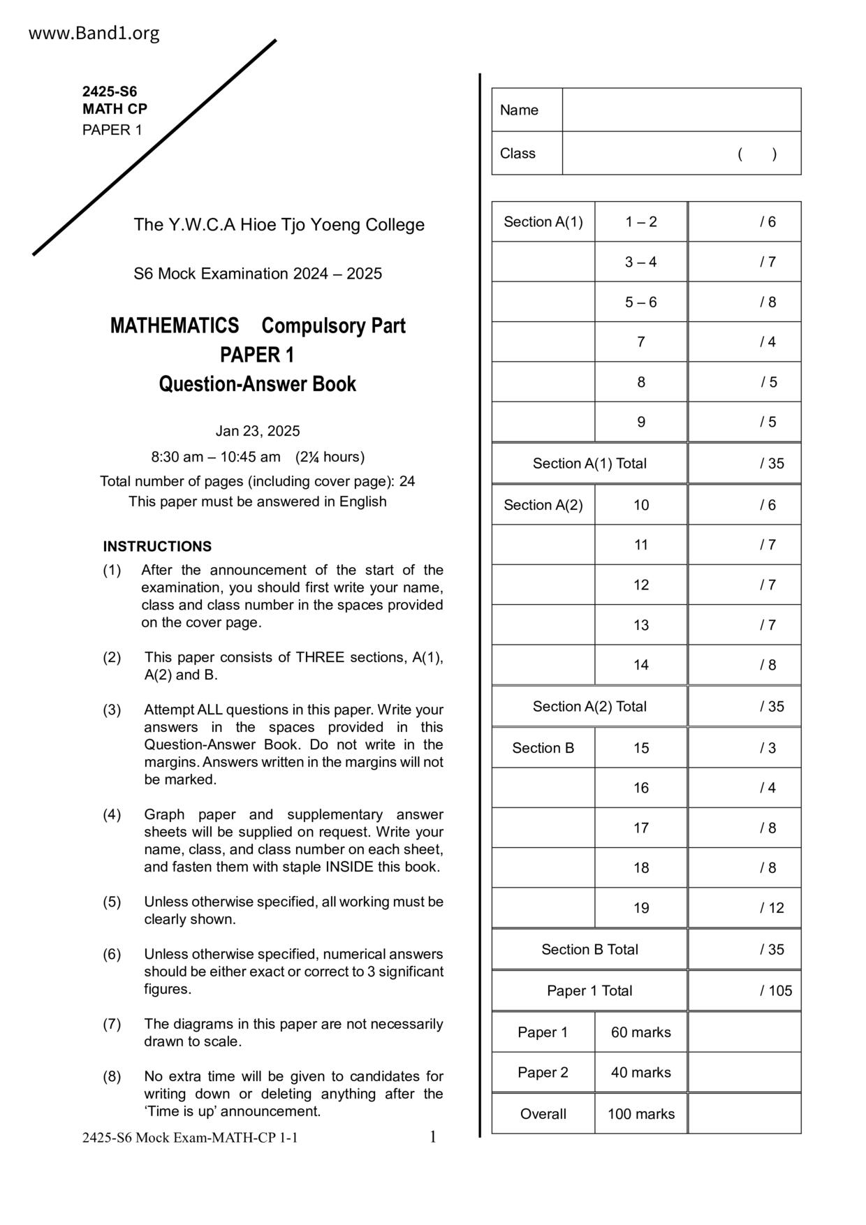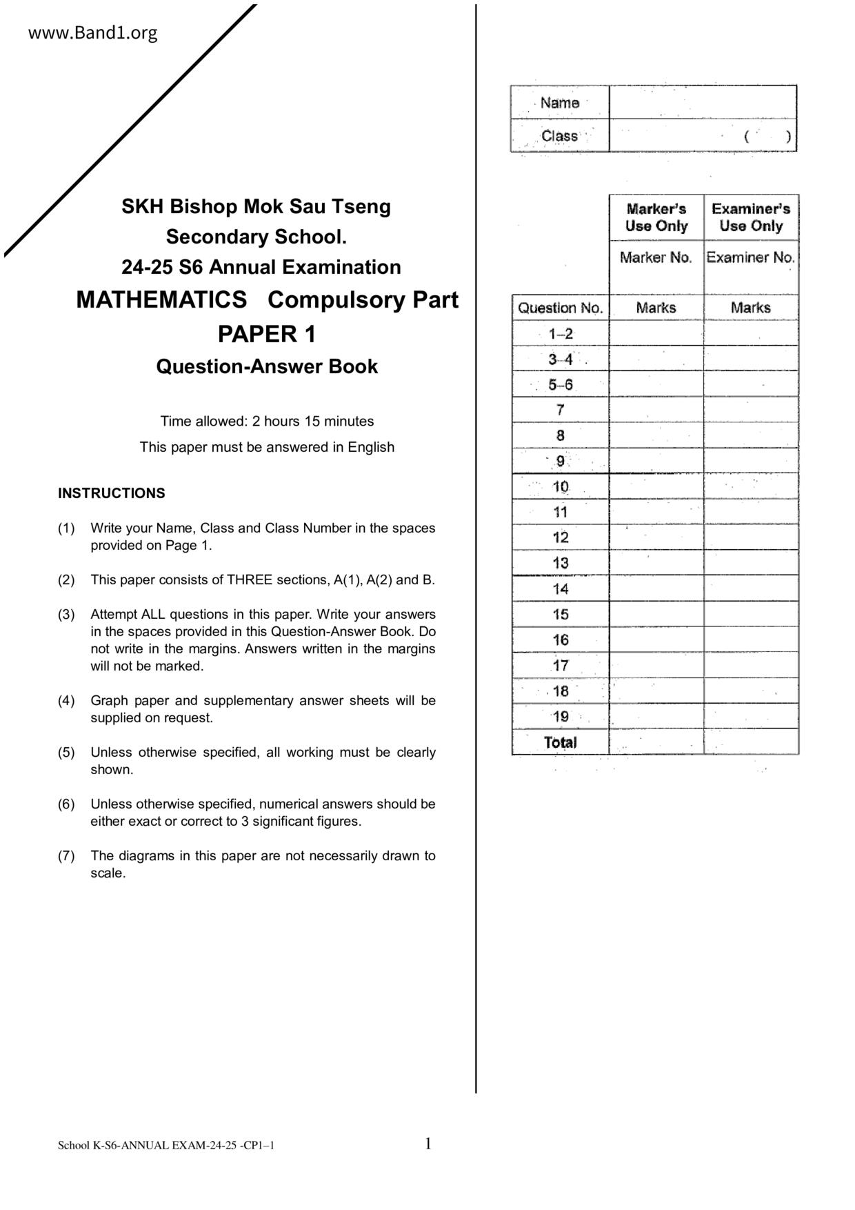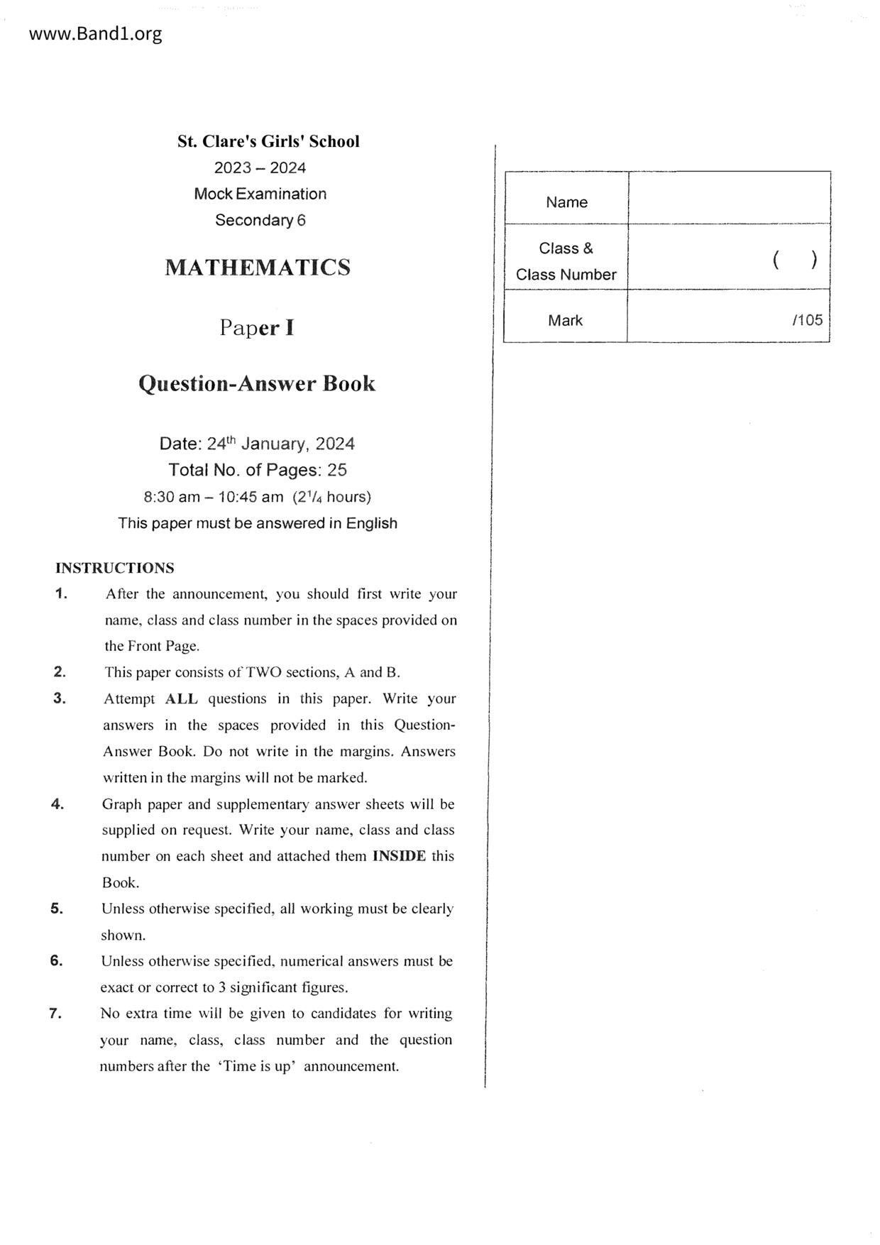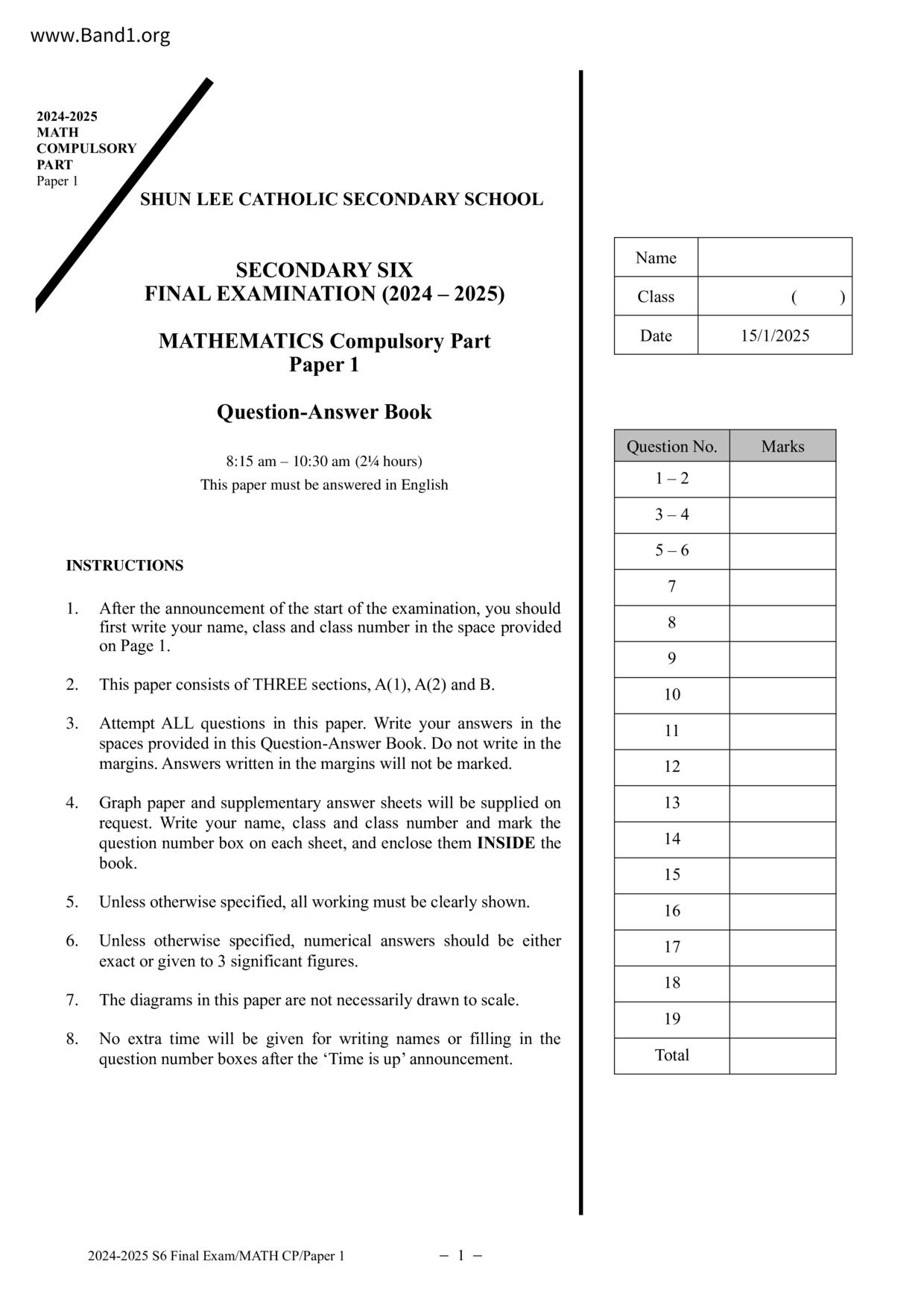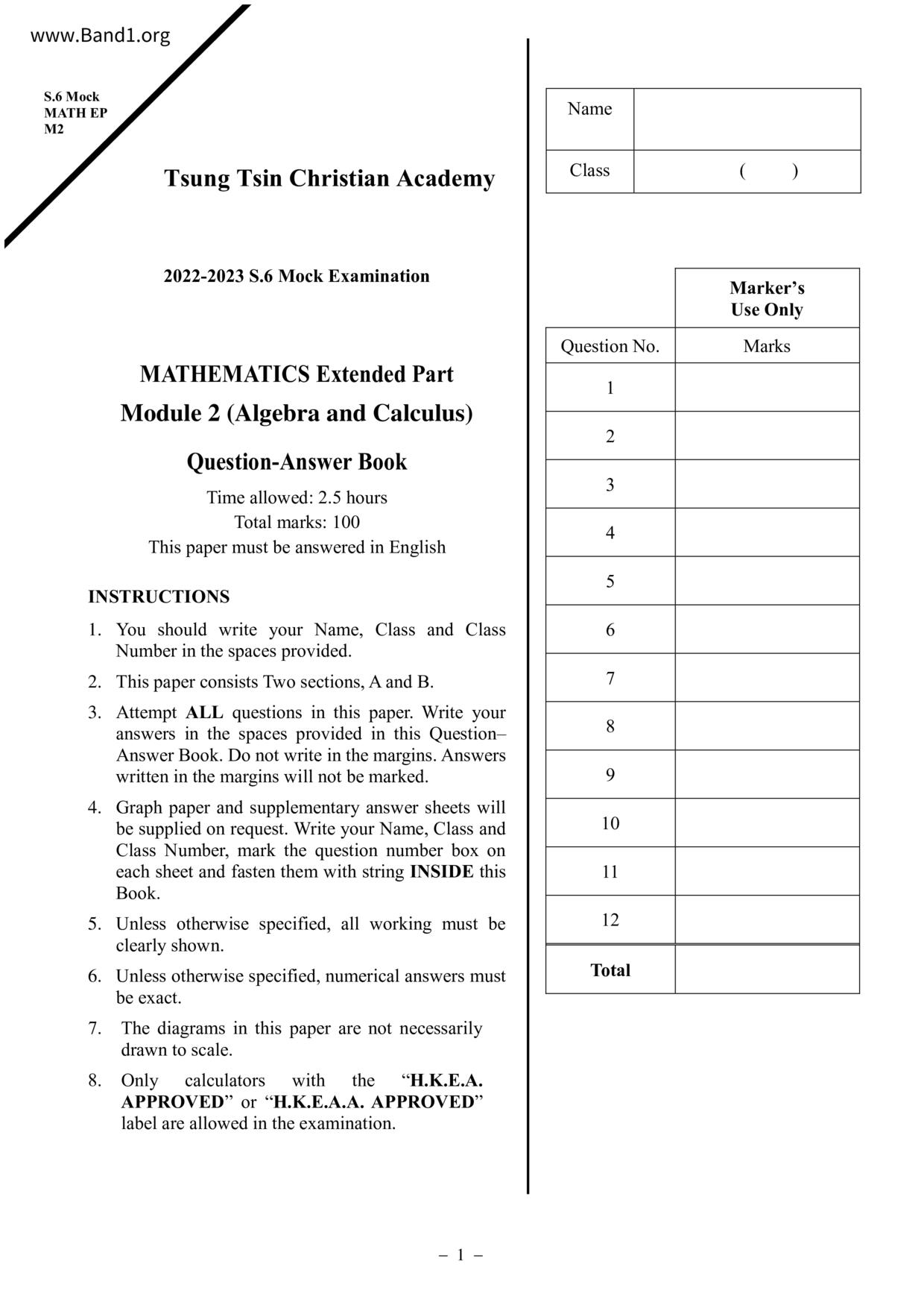 香港 中六 各科 (HK F6 maths) 試卷 pdf