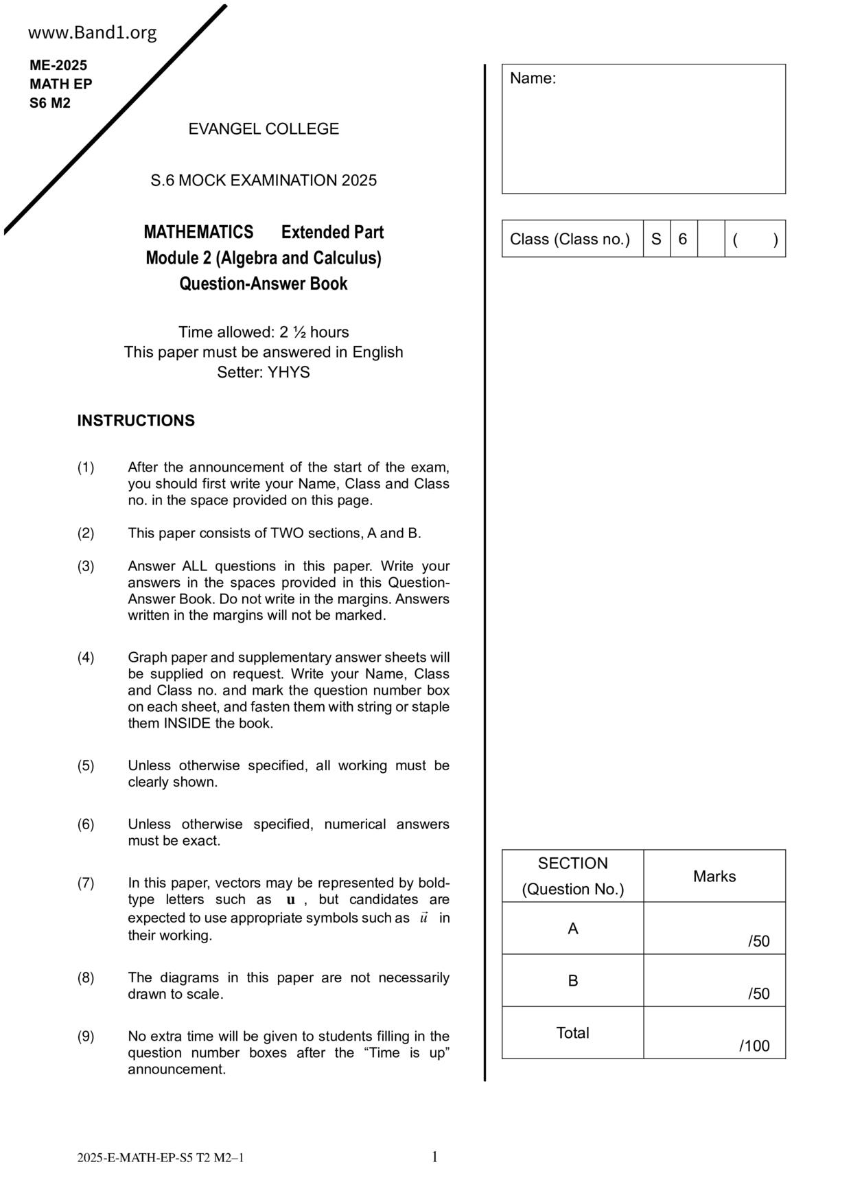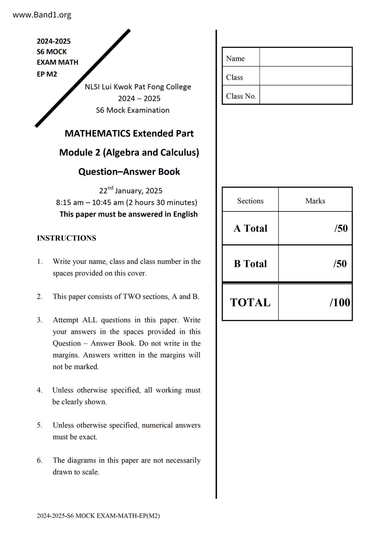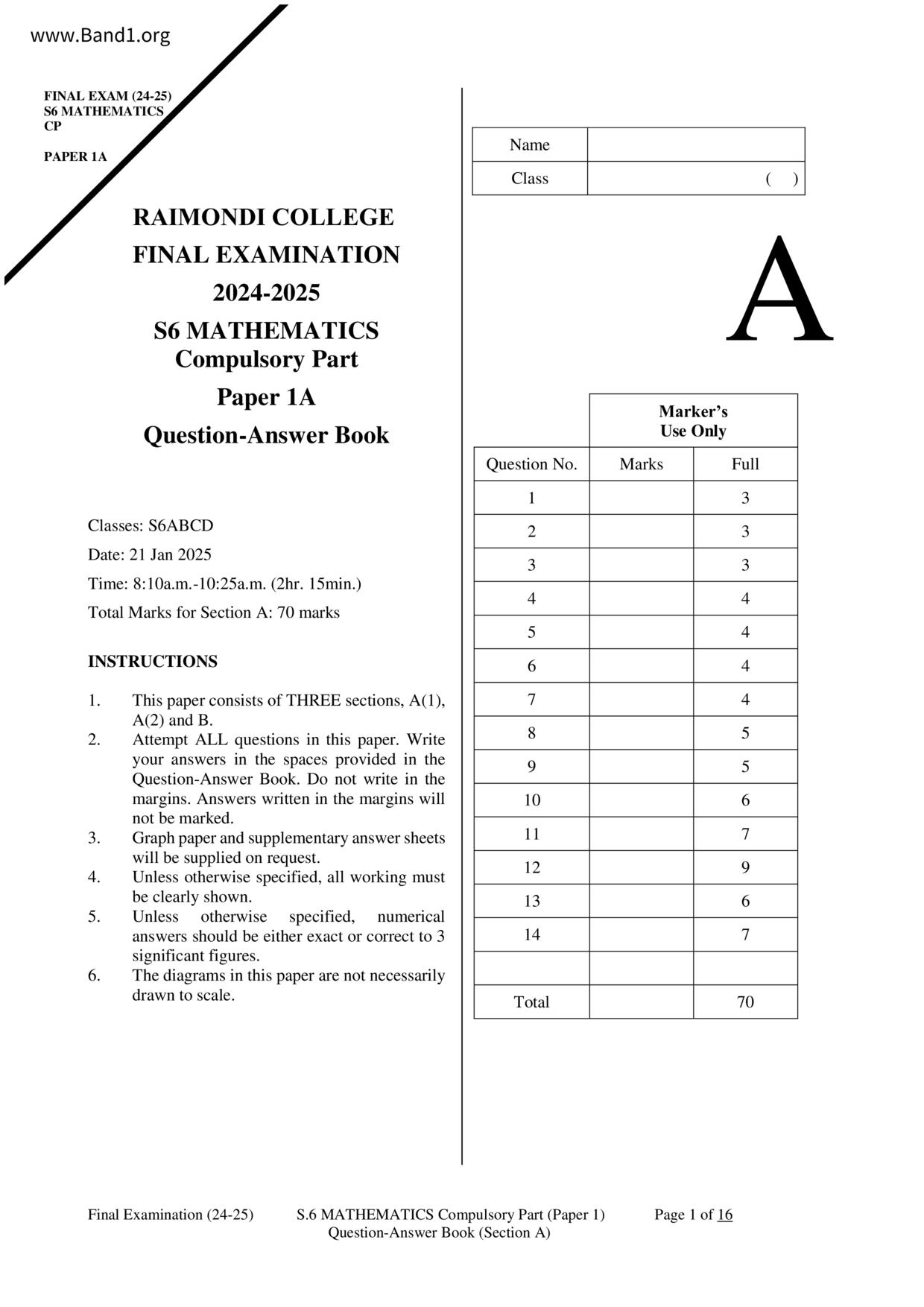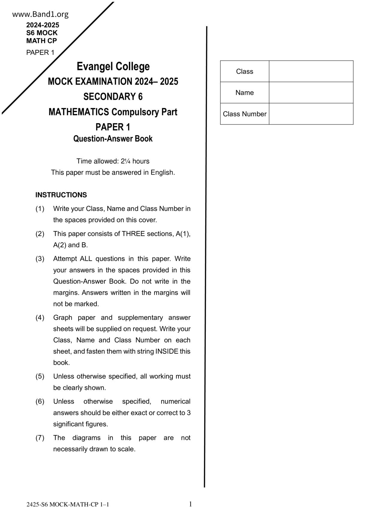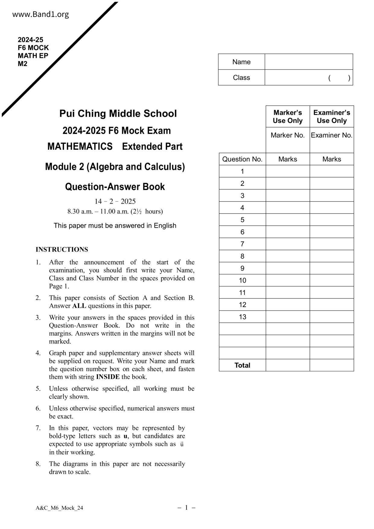 香港 中六 各科 (HK F6 maths) 試卷 pdf