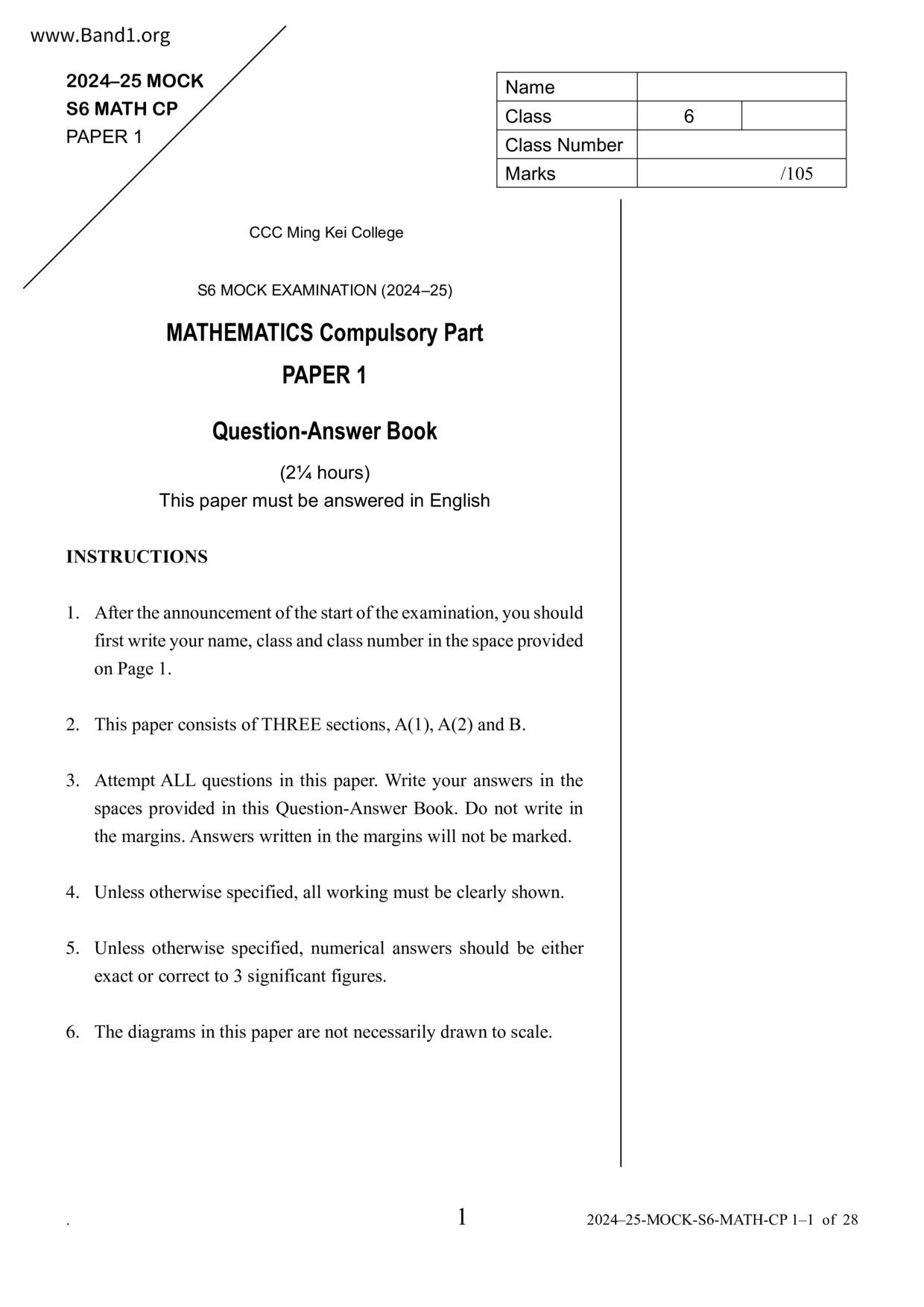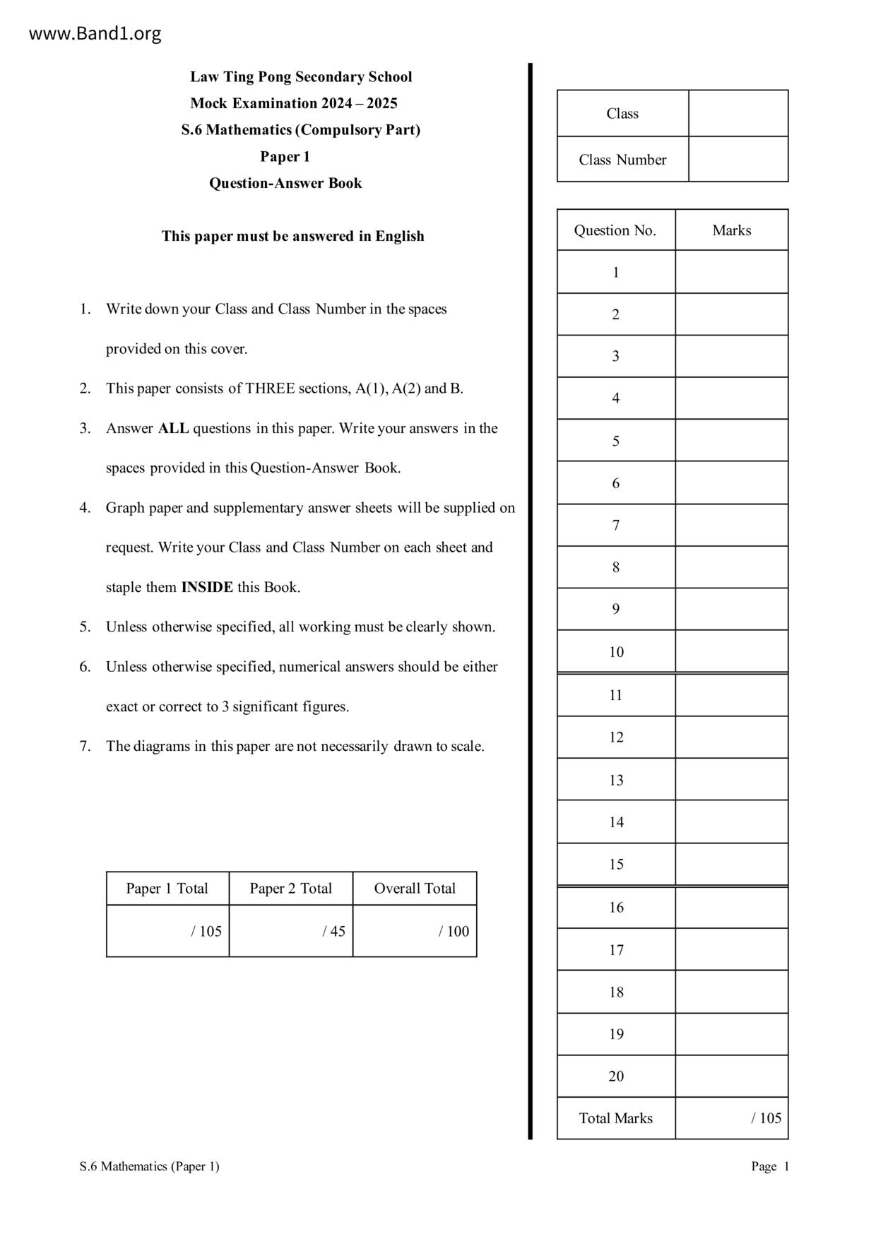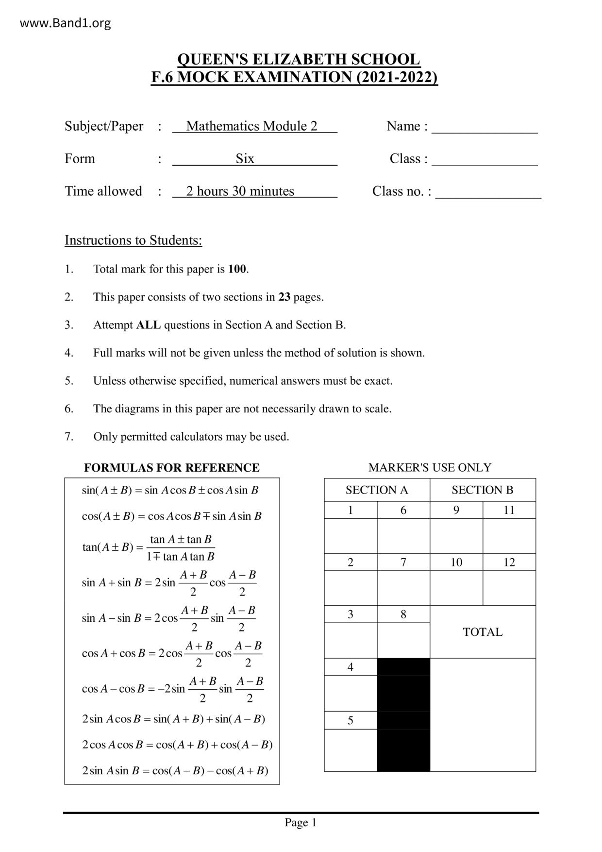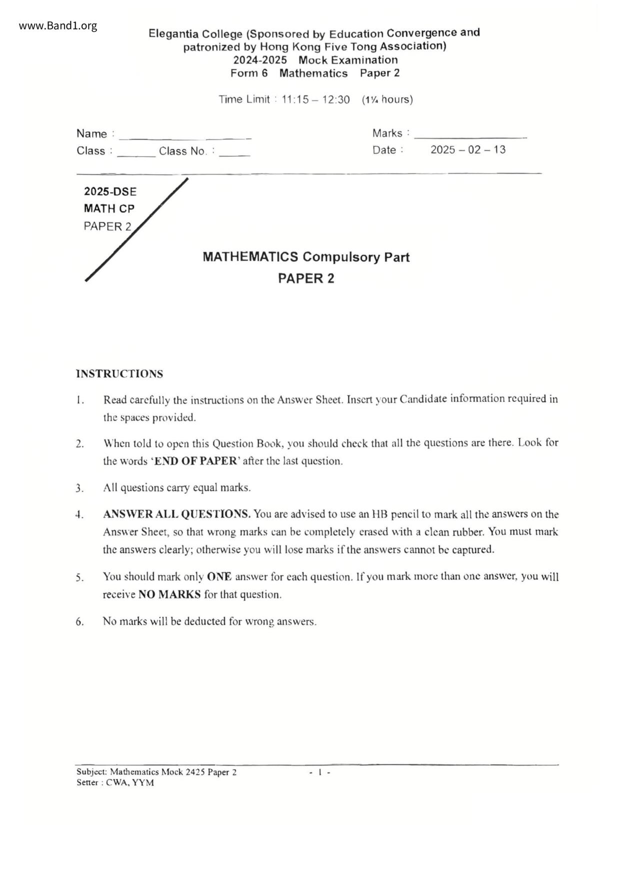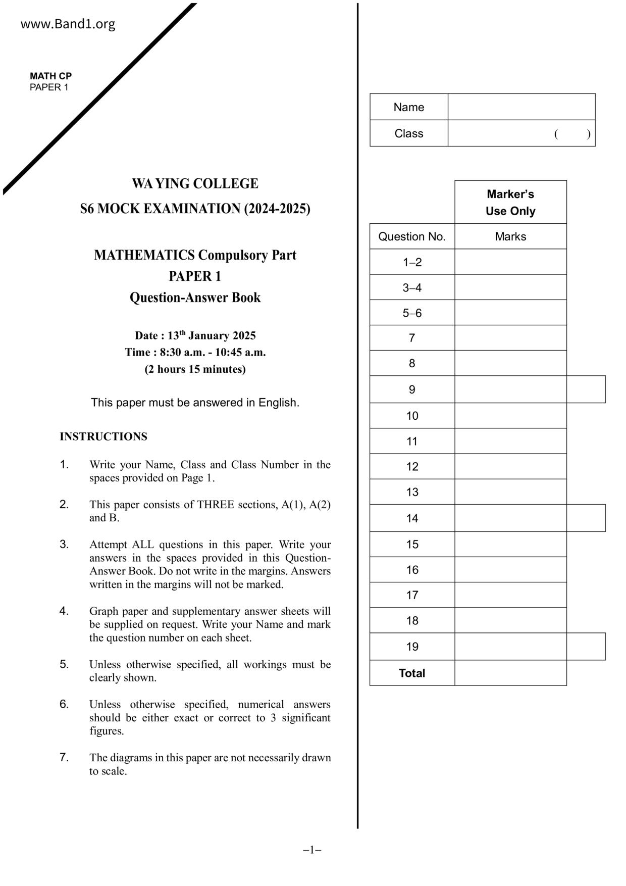 香港 中六 各科 (HK F6 maths) 試卷 pdf