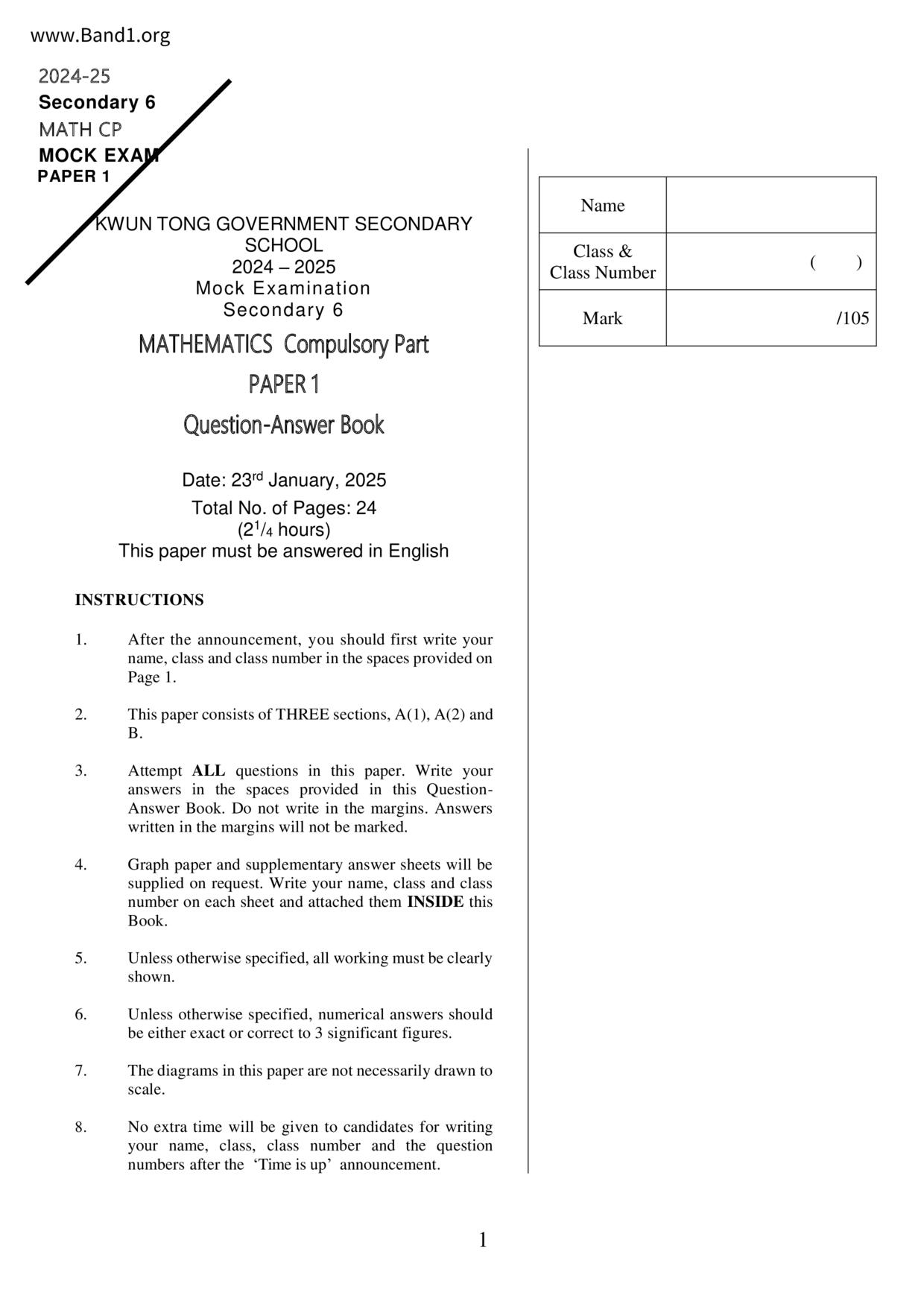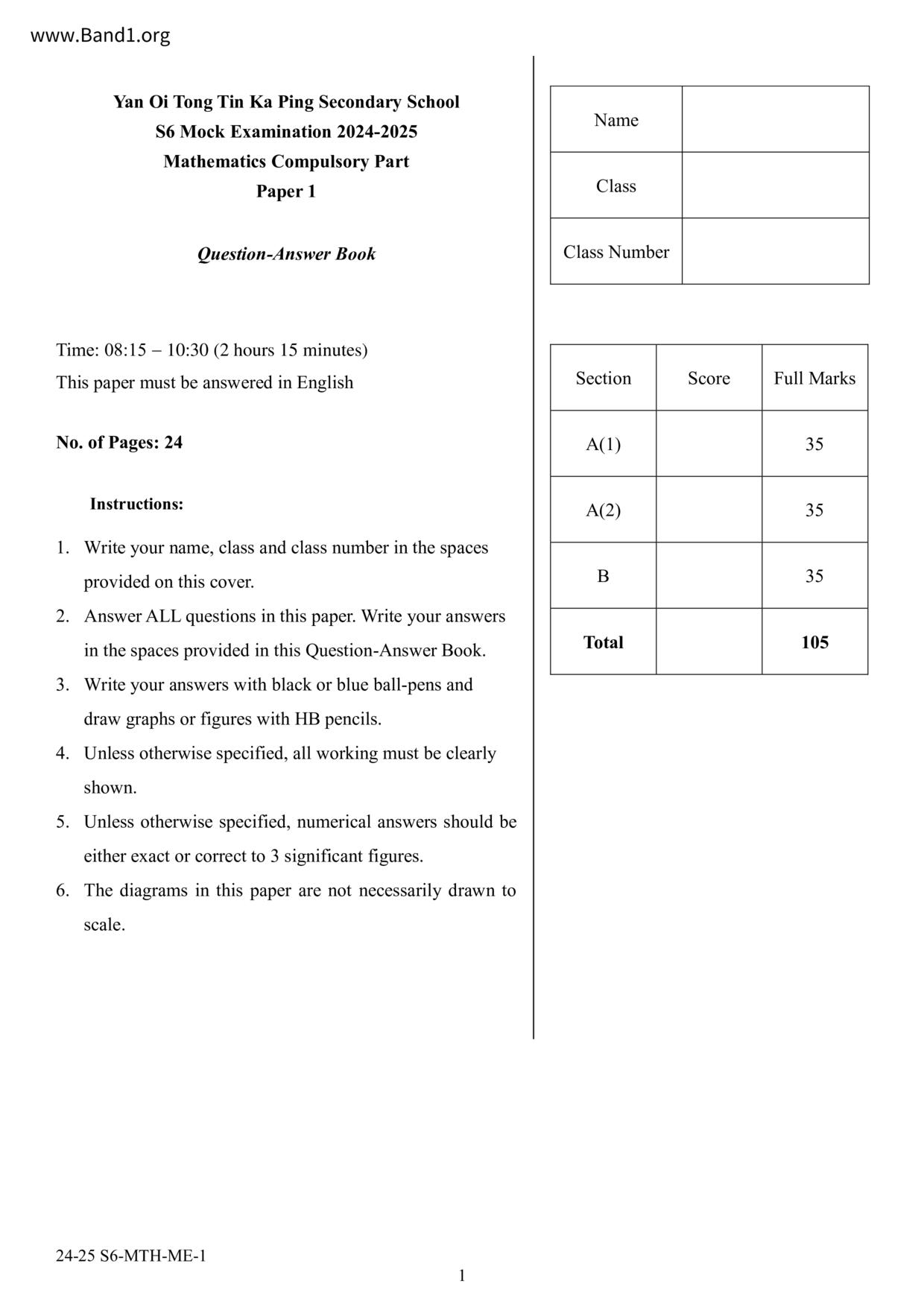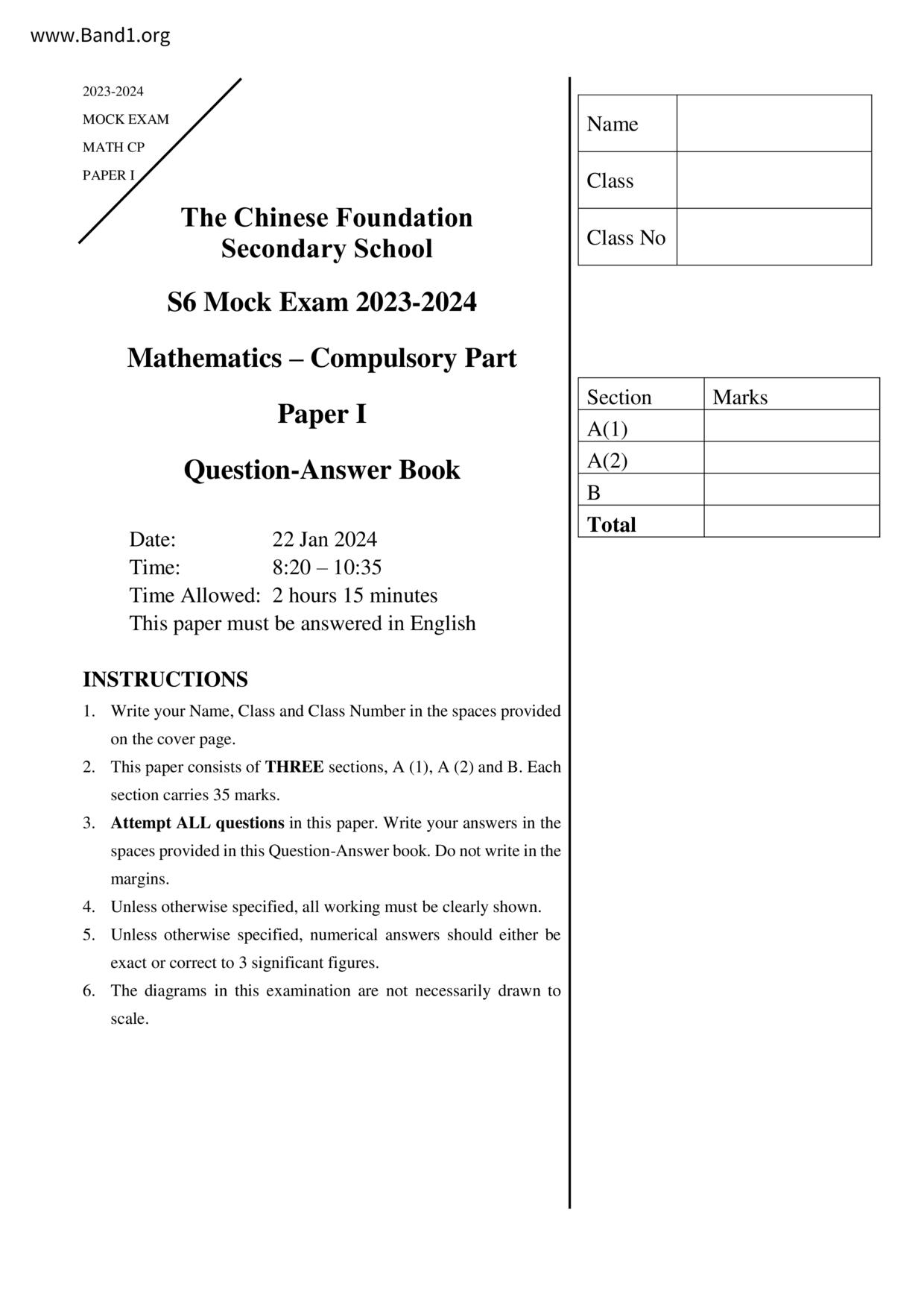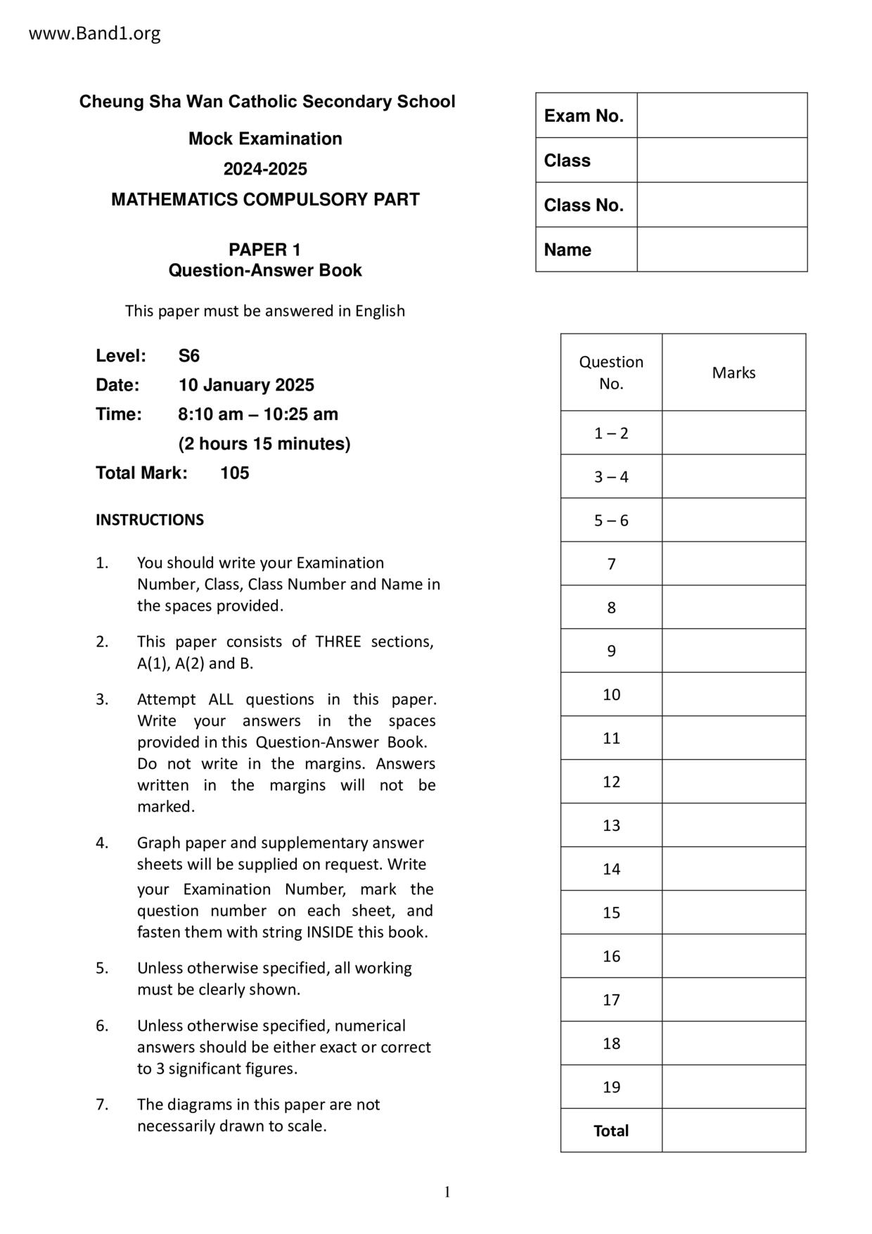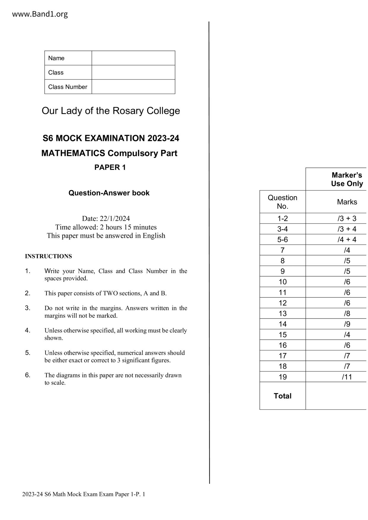 香港 中六 各科 (HK F6 maths) 試卷 pdf