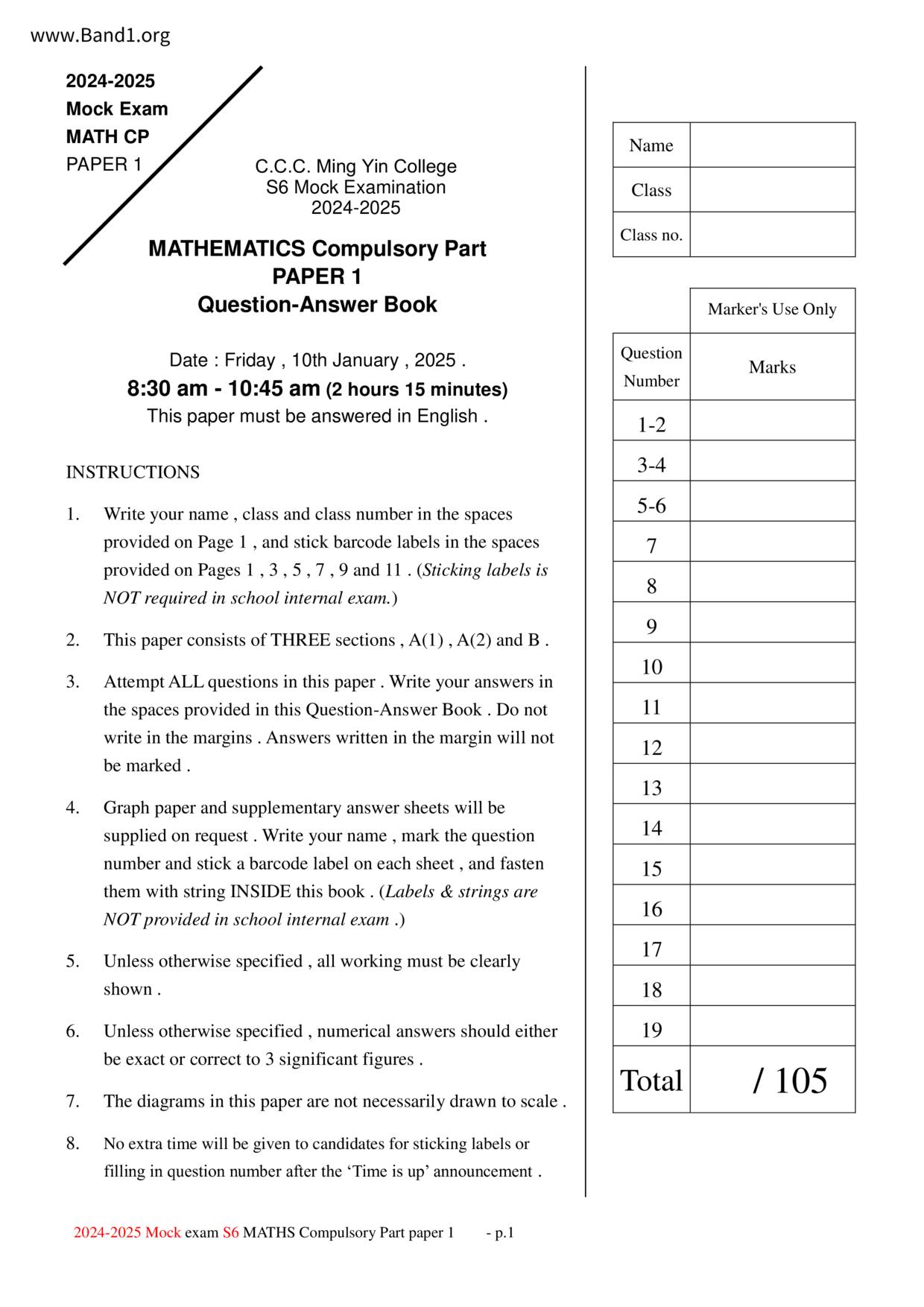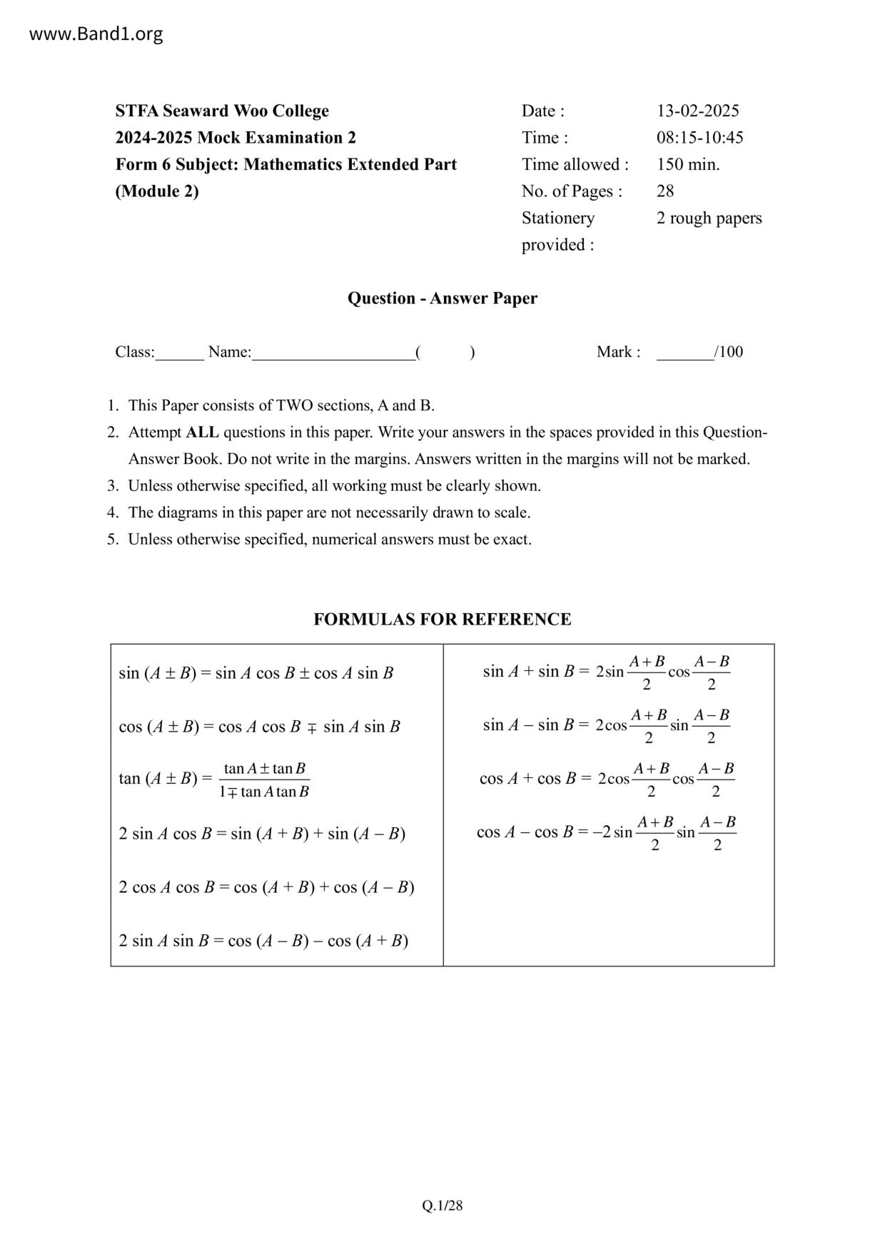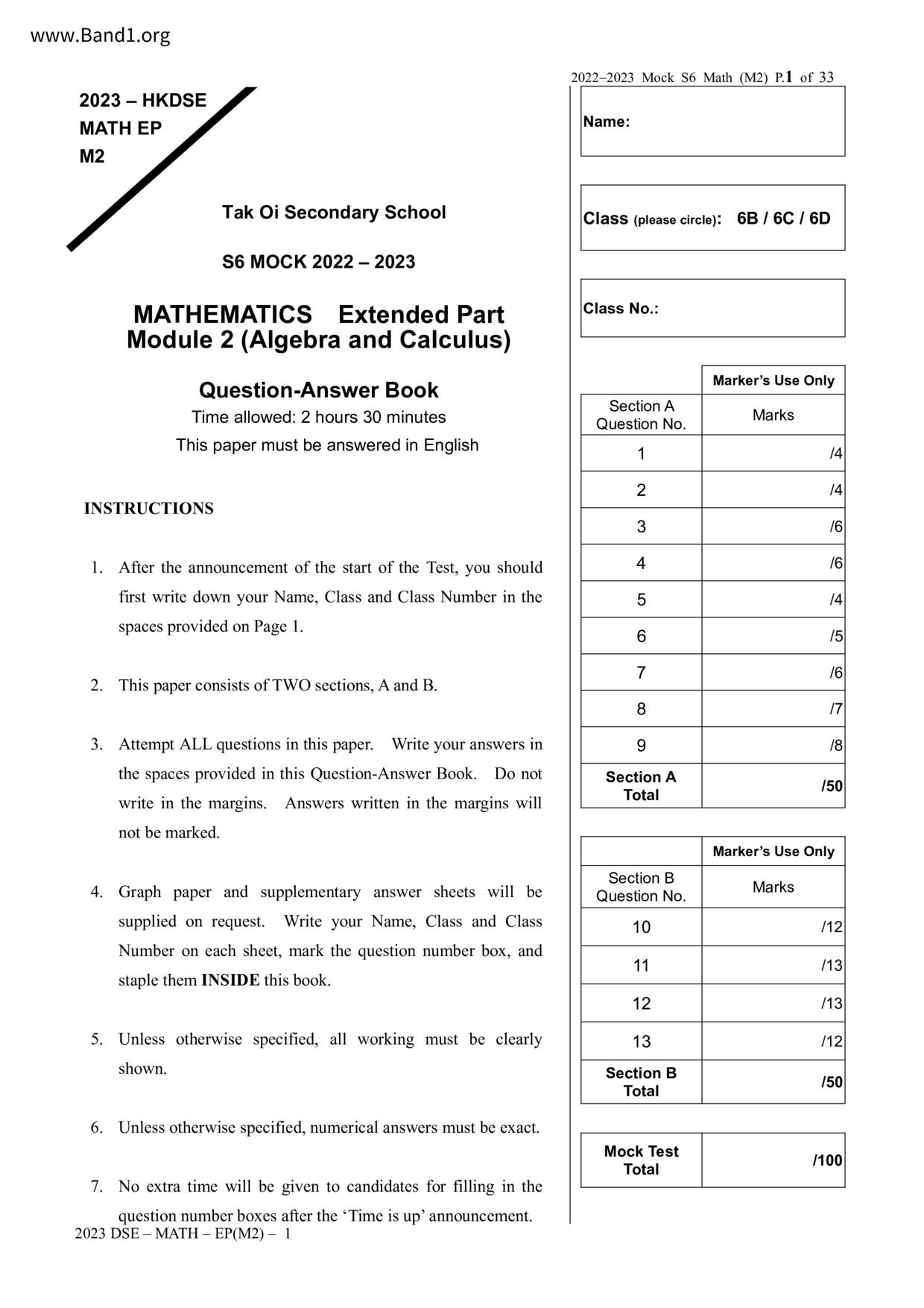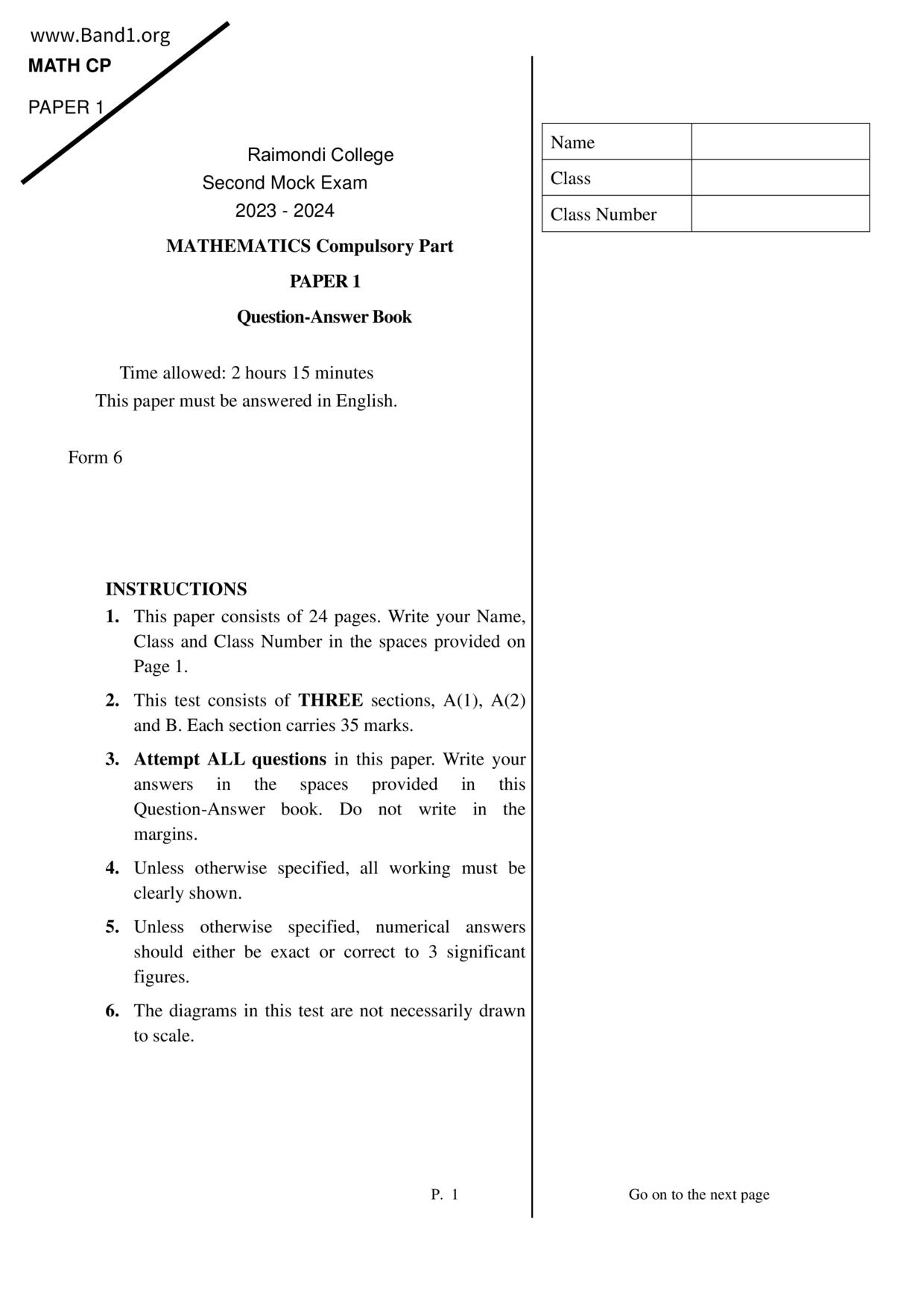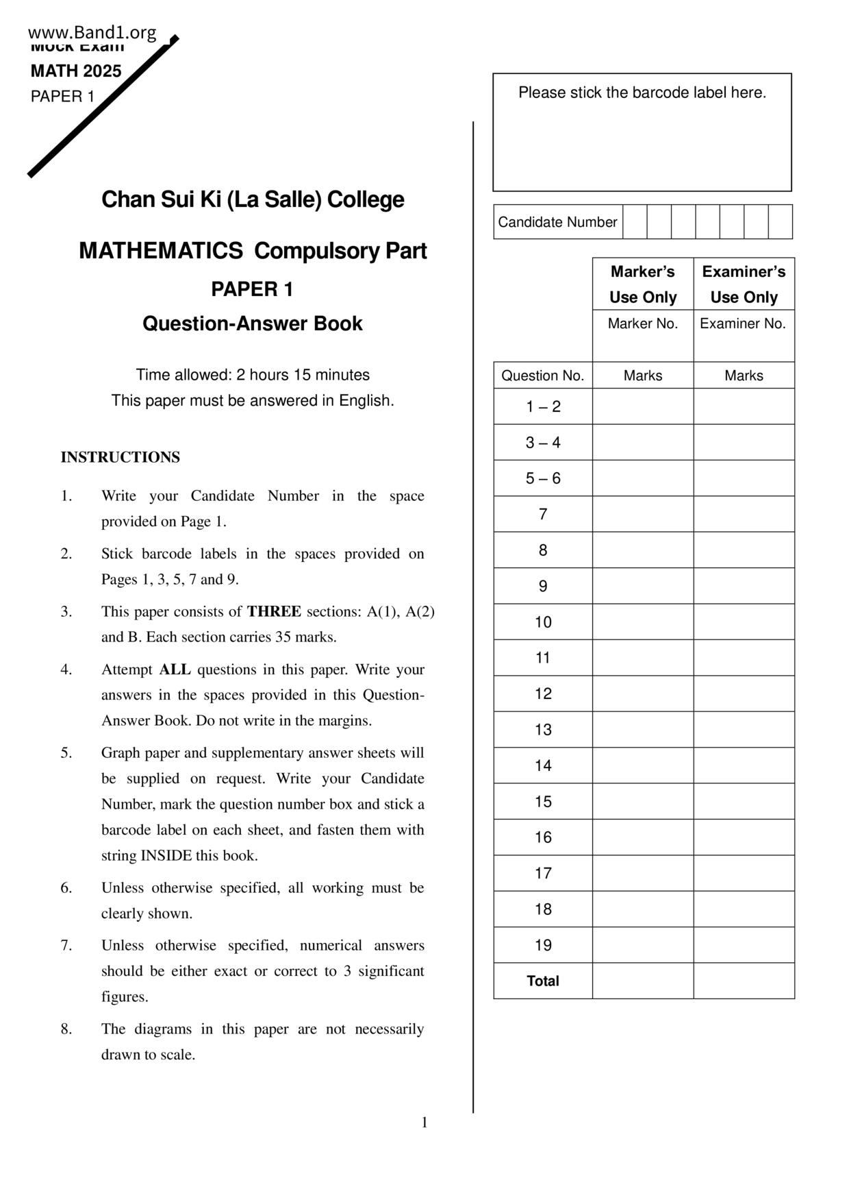 香港 中六 各科 (HK F6 maths) 試卷 pdf