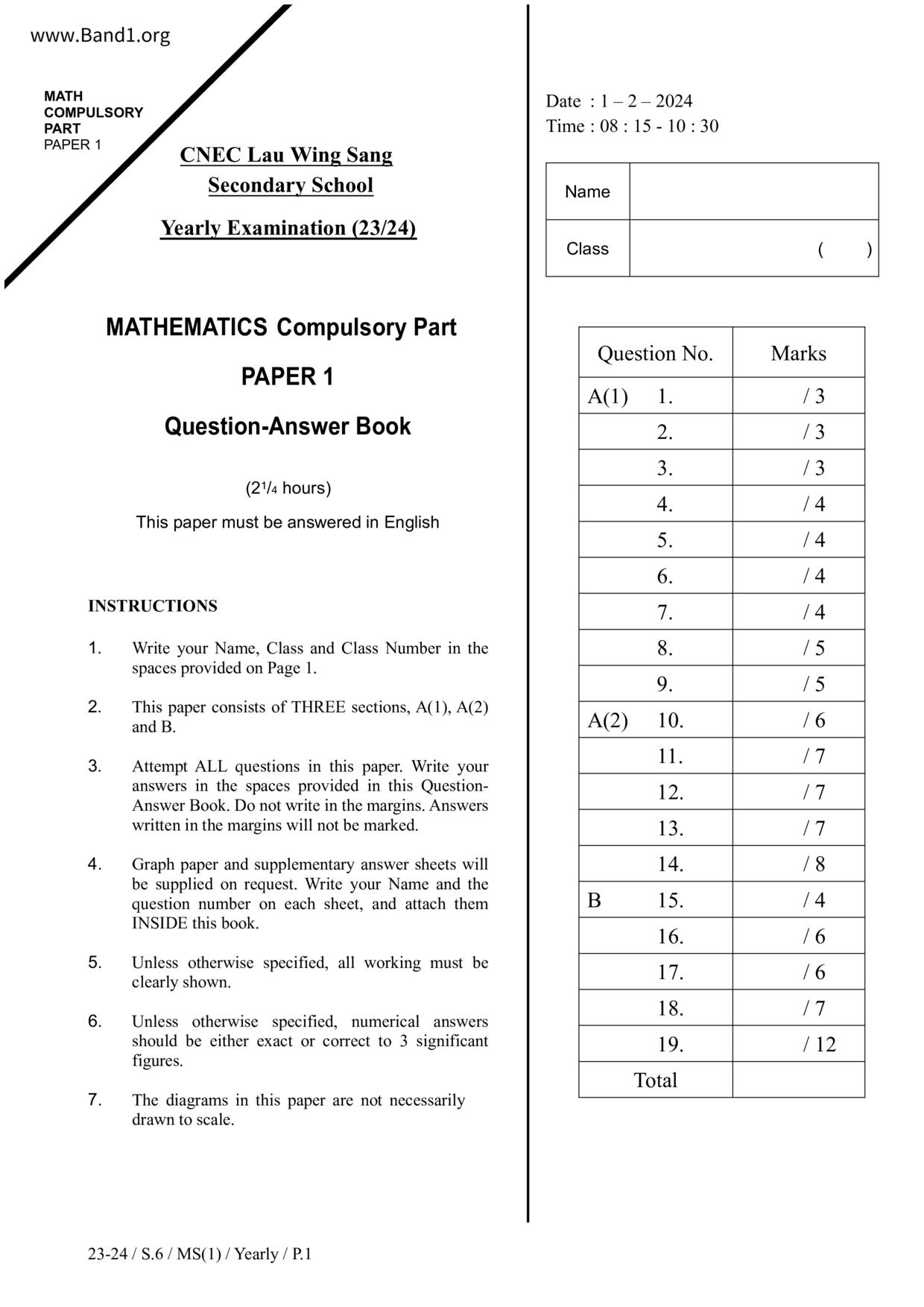 中六 數學 嗇色園主辦可譽中學暨可譽小學