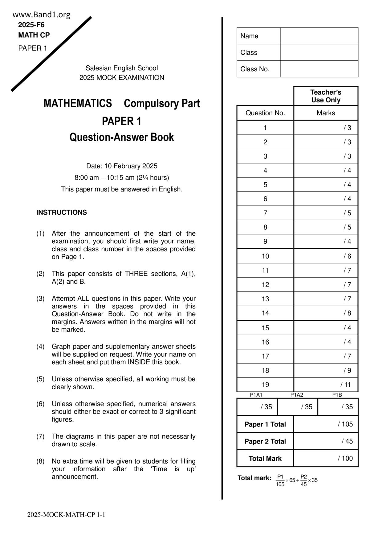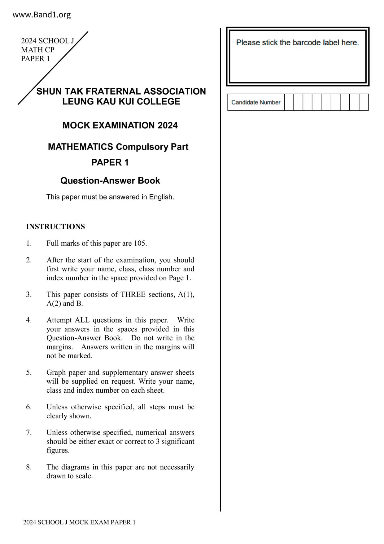 中六 數學 香港九龍塘基督教中華宣道會鄭榮之中學