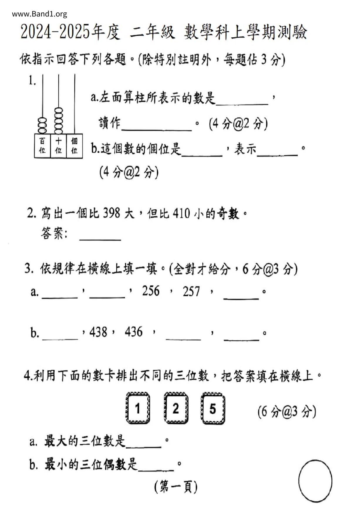 小二 數學 姓名