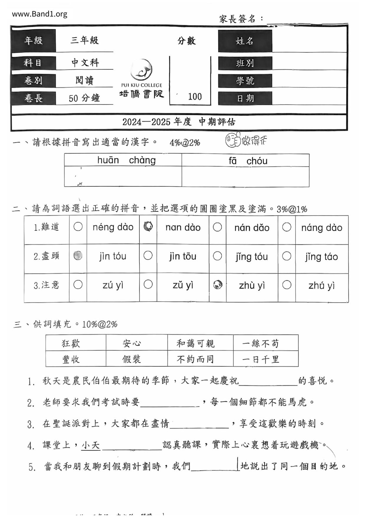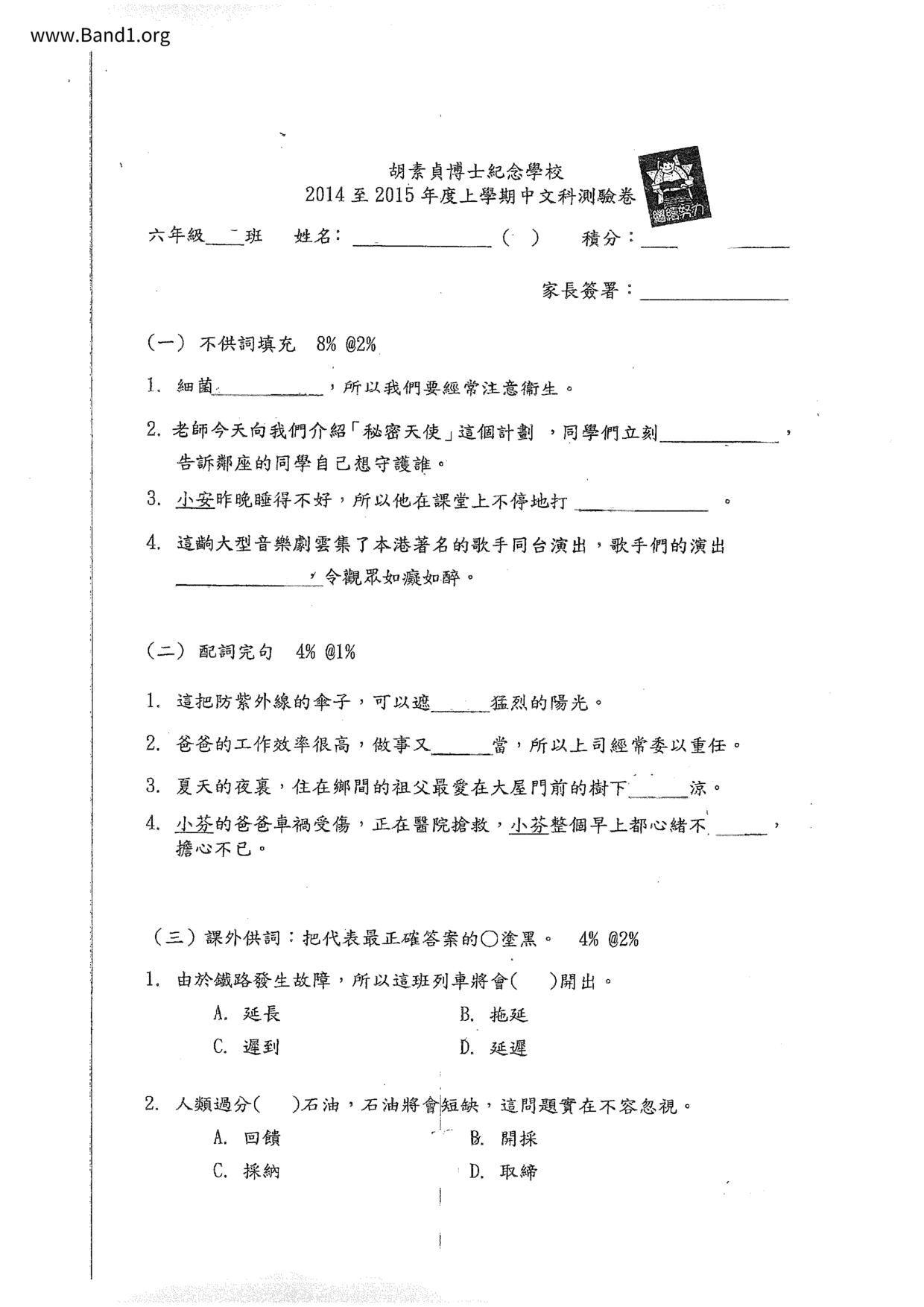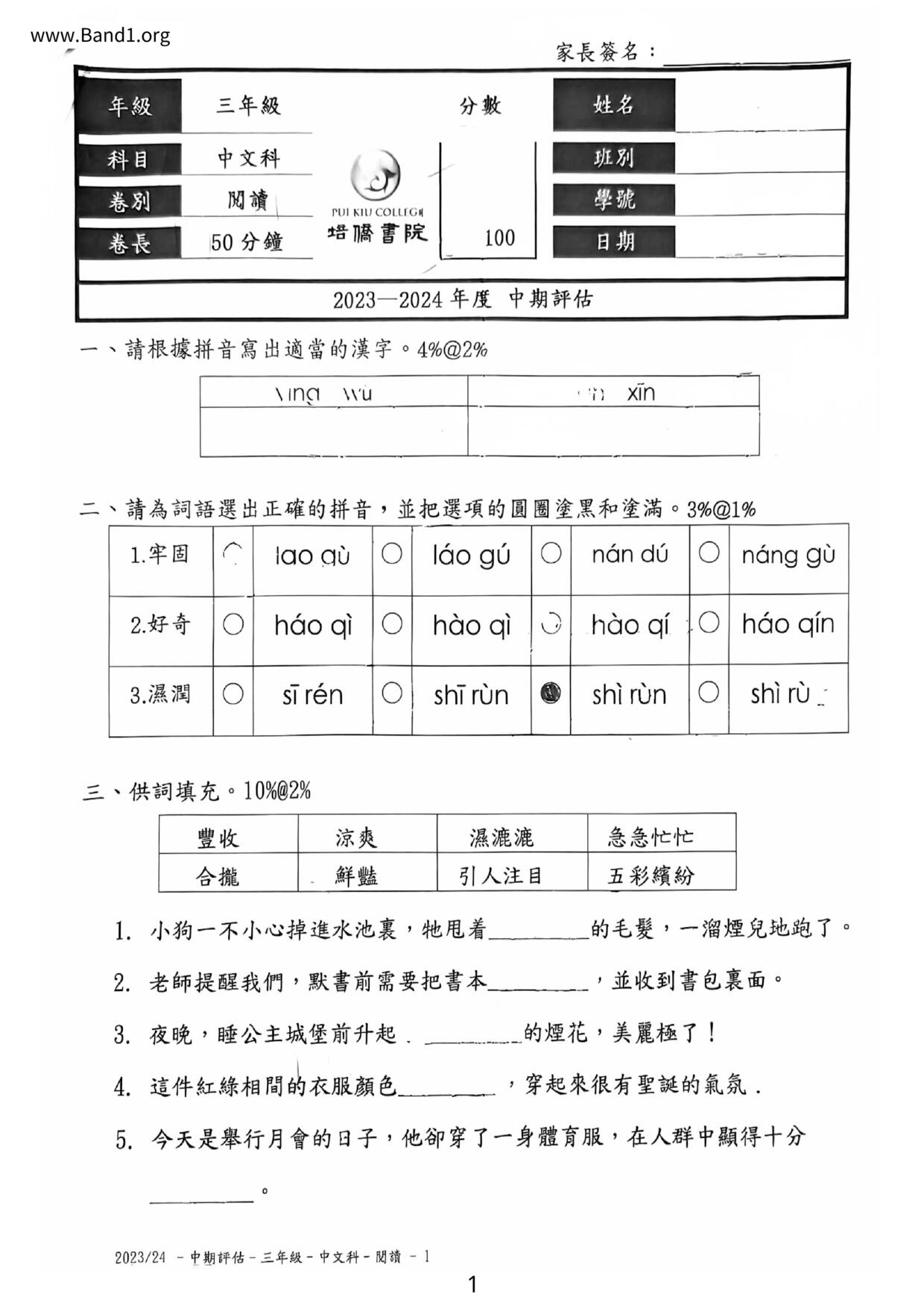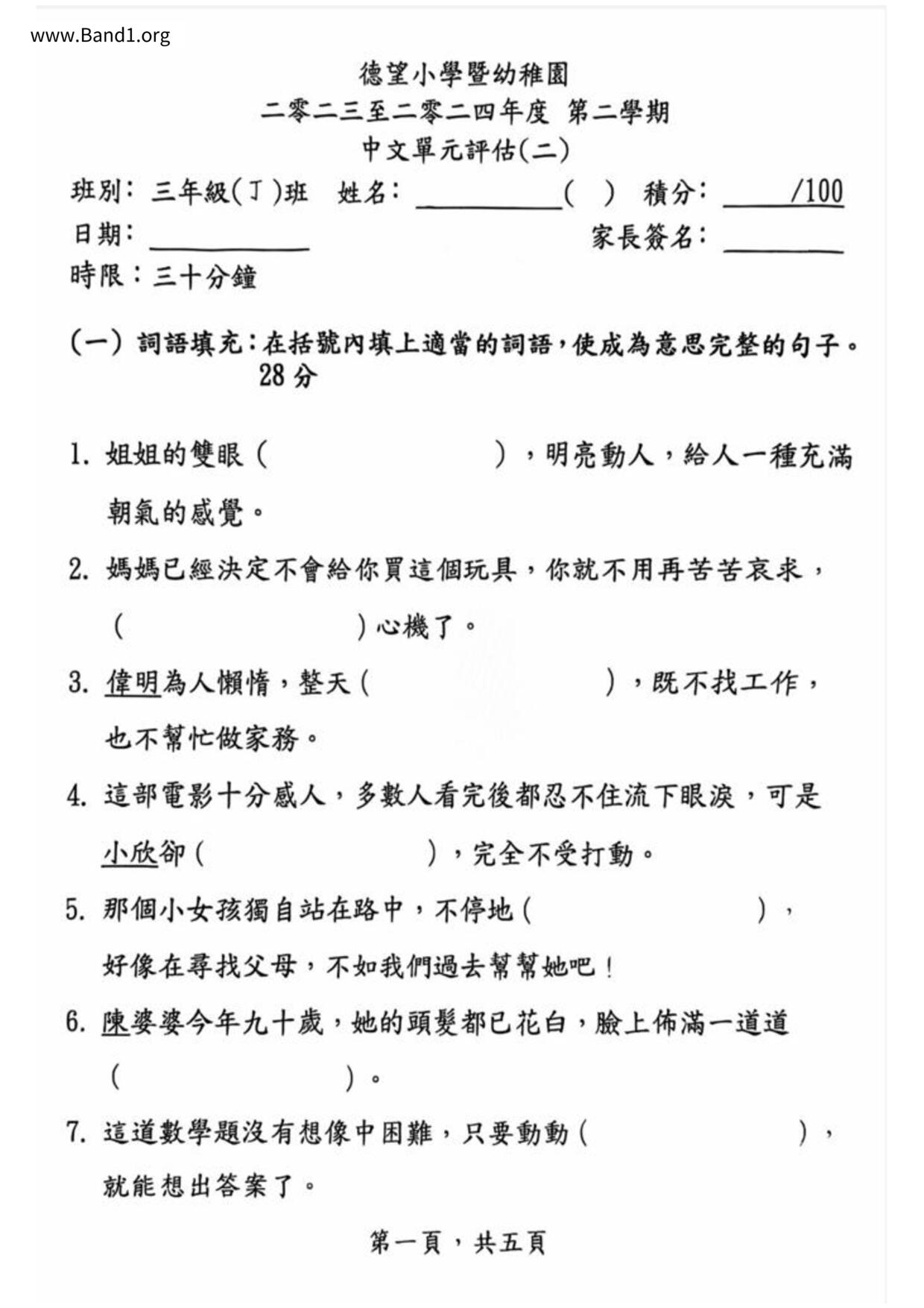 香港 中小學 中文 (HK Chinese) 試卷 pdf
