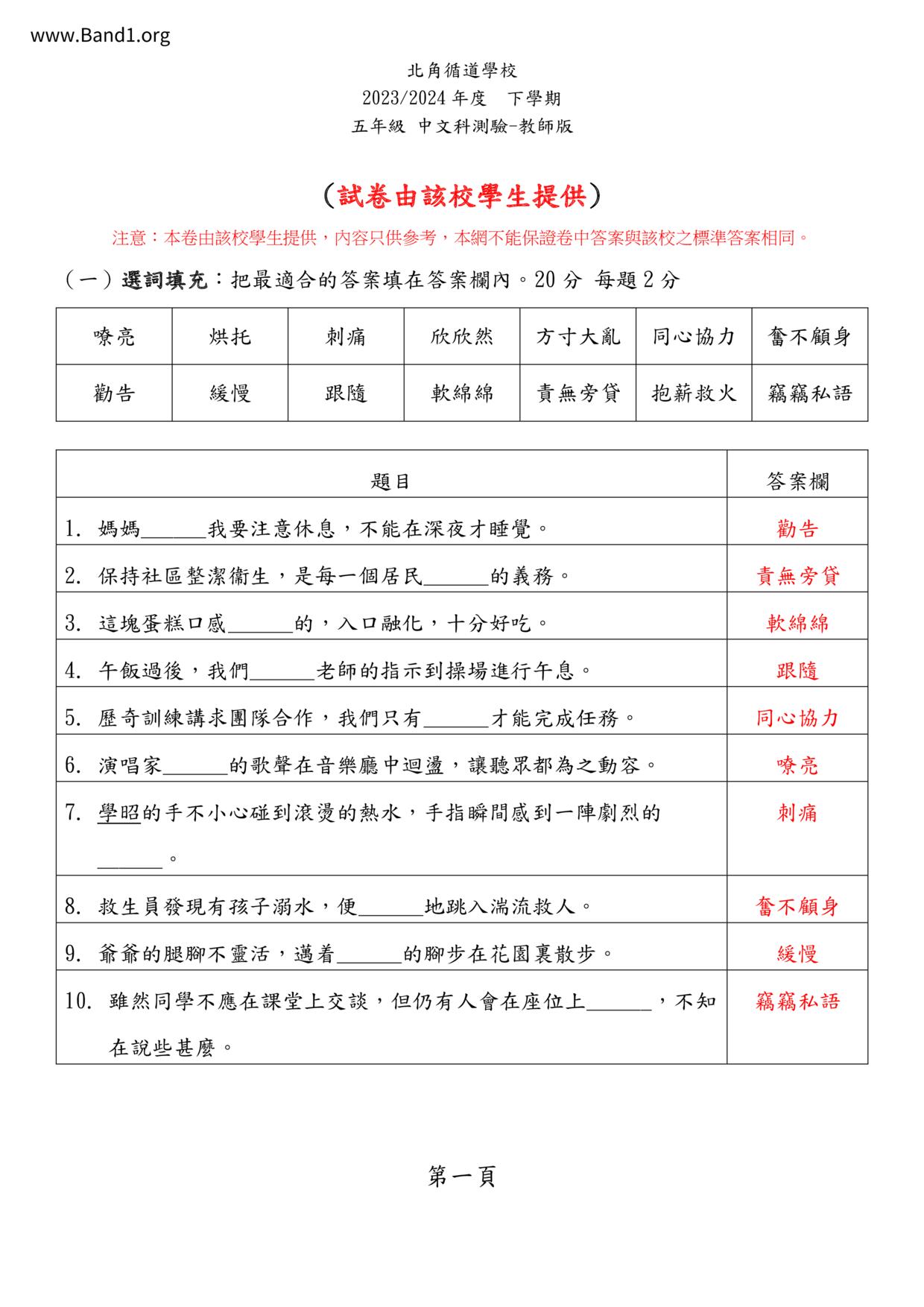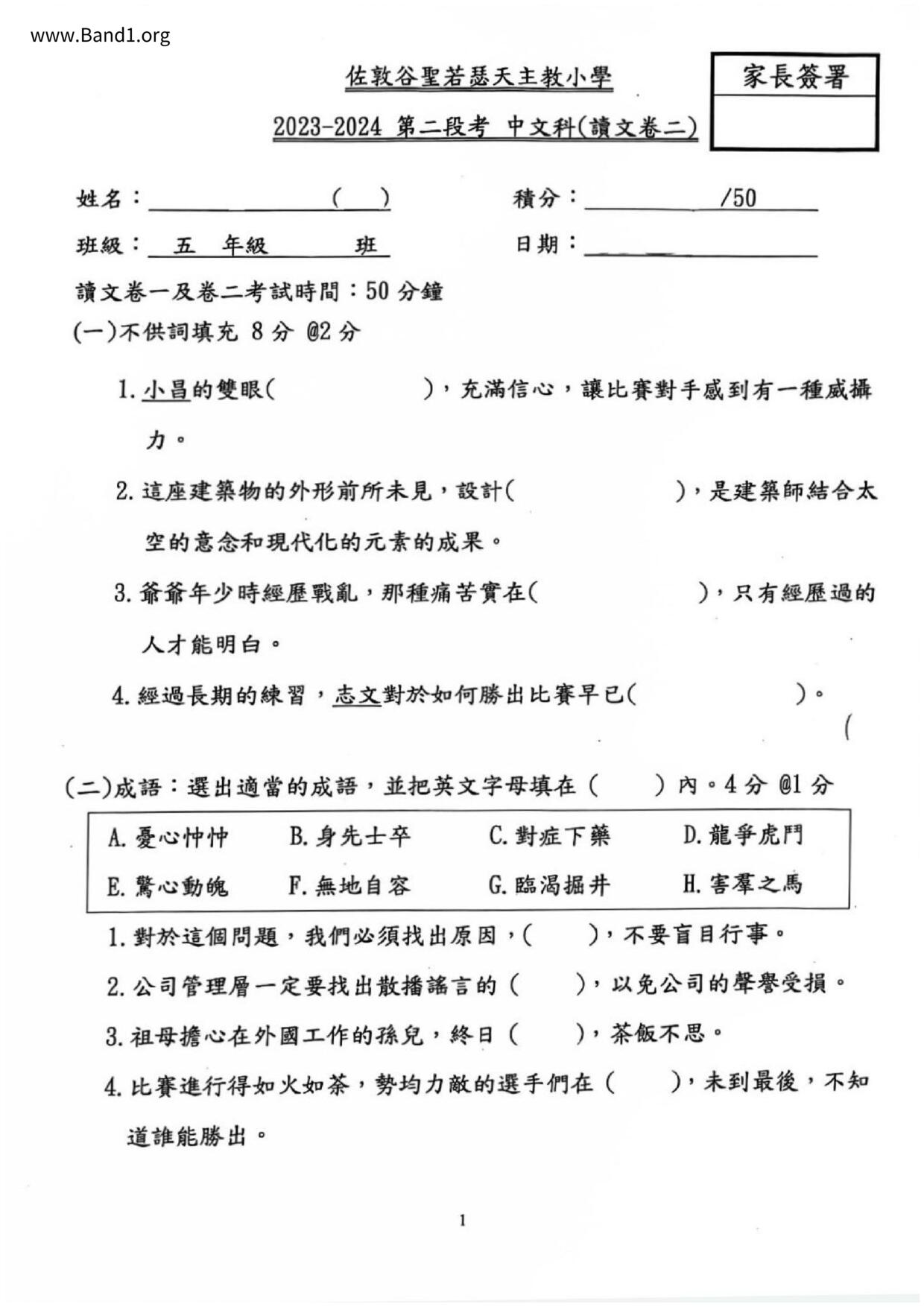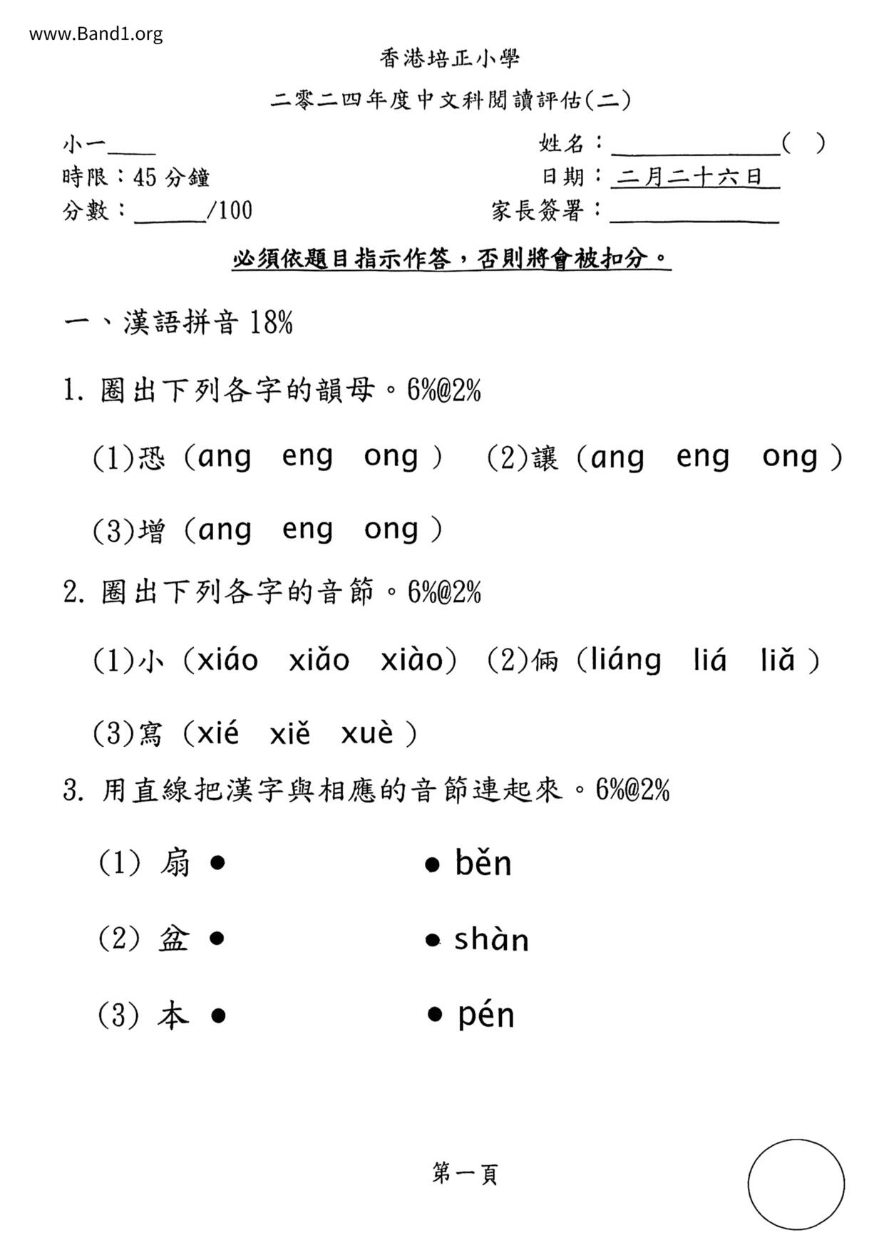 香港 中小學 中文 (HK Chinese) 試卷 pdf