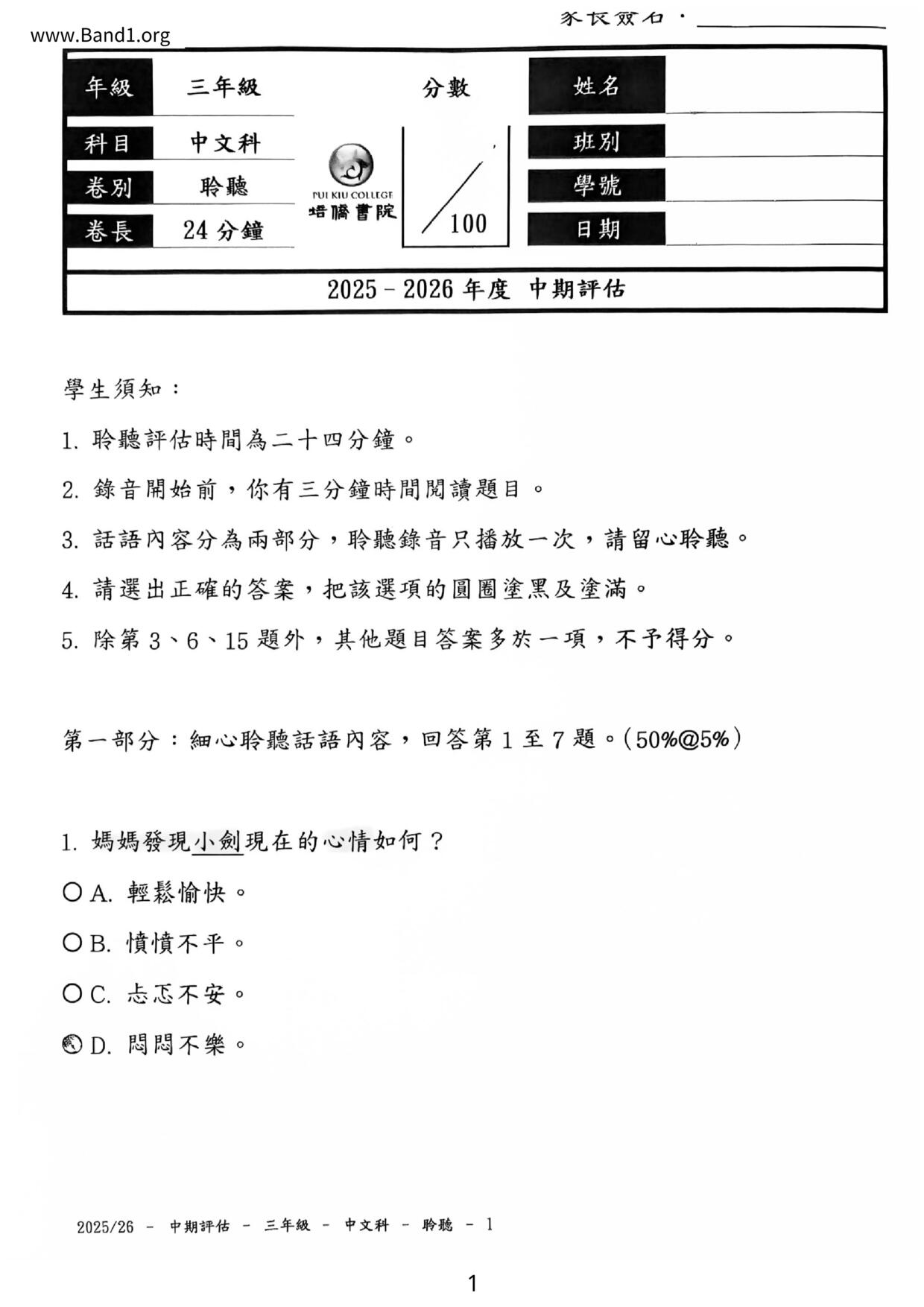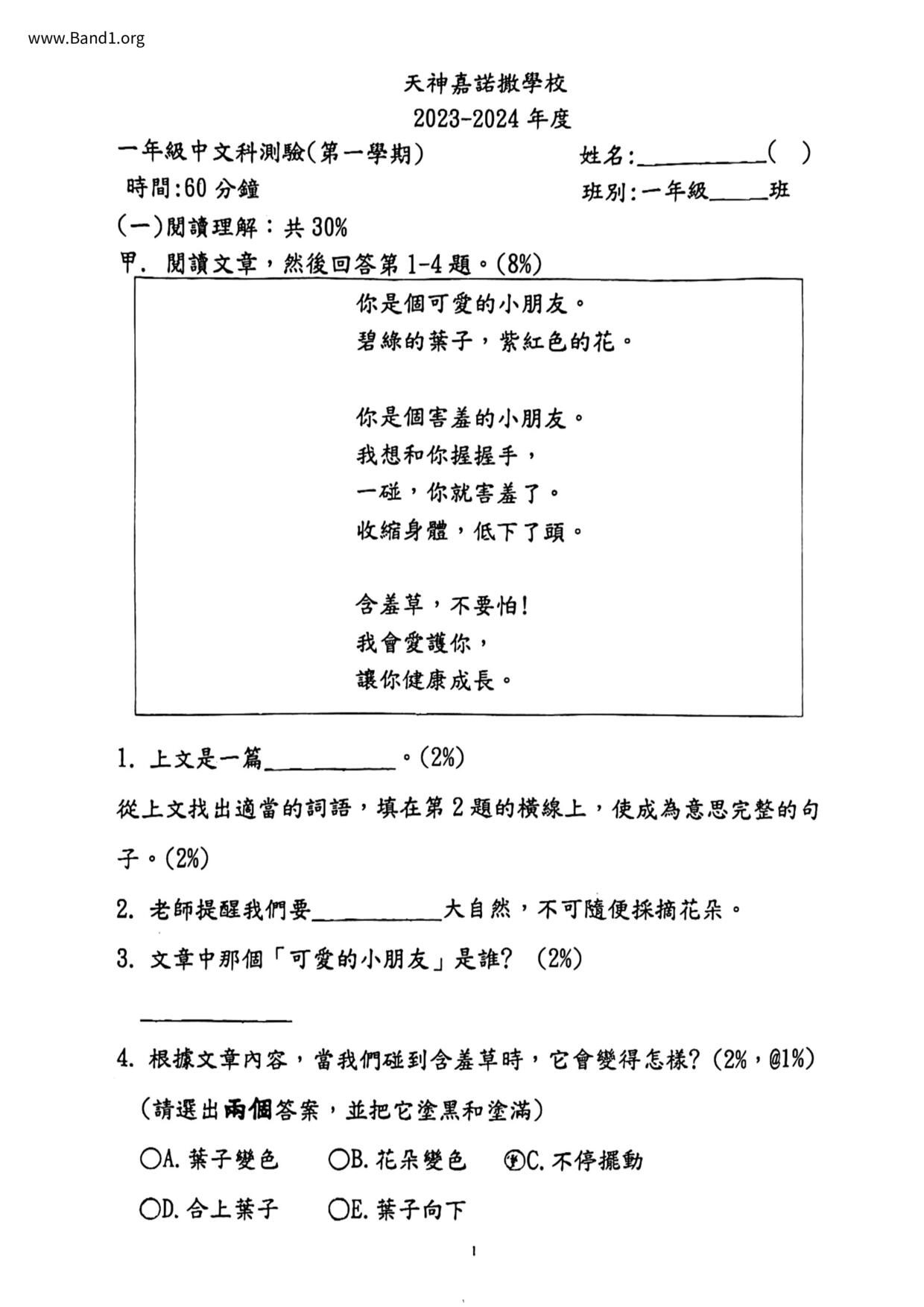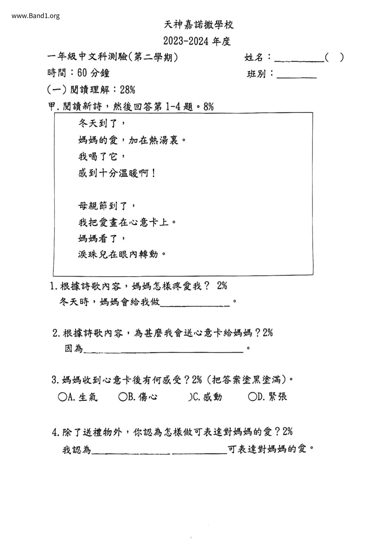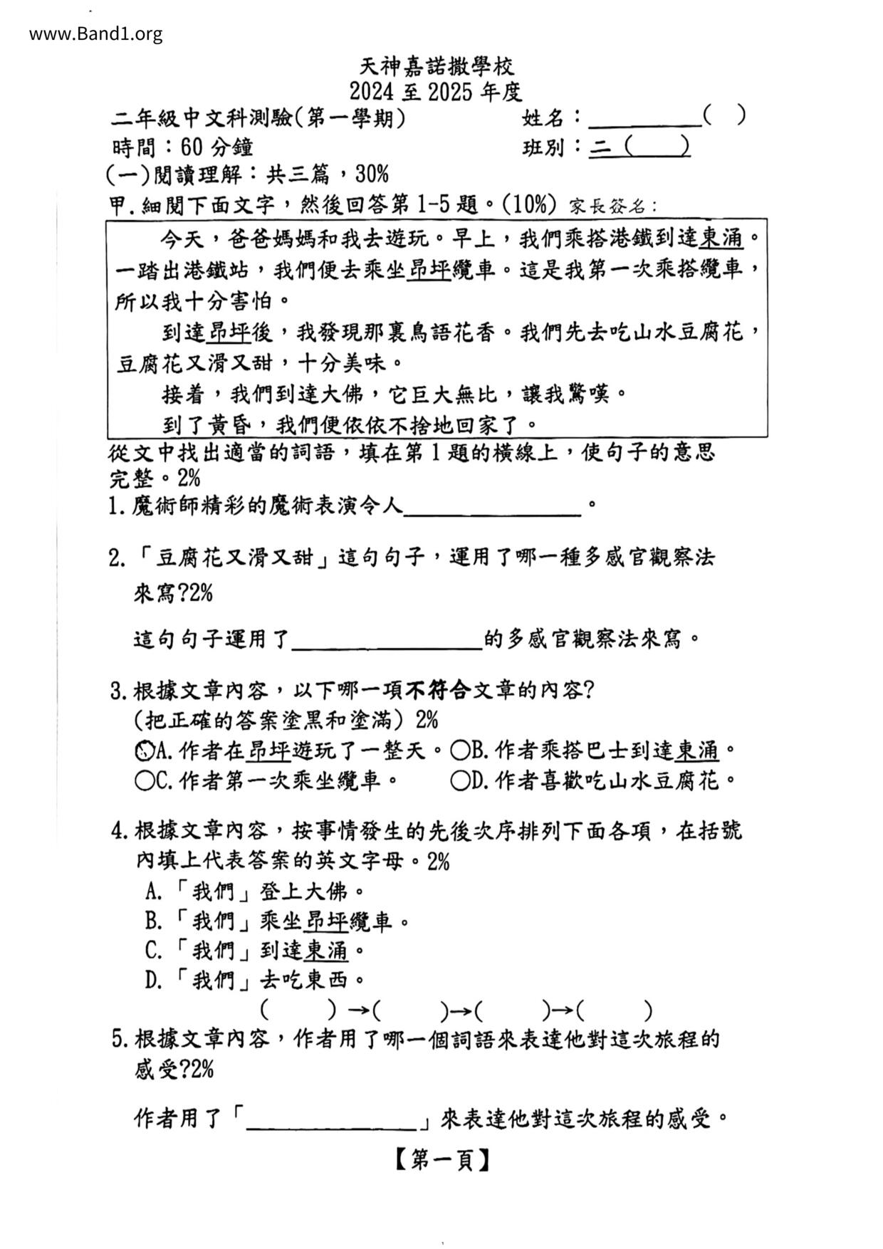 香港 中小學 中文 (HK Chinese) 試卷 pdf