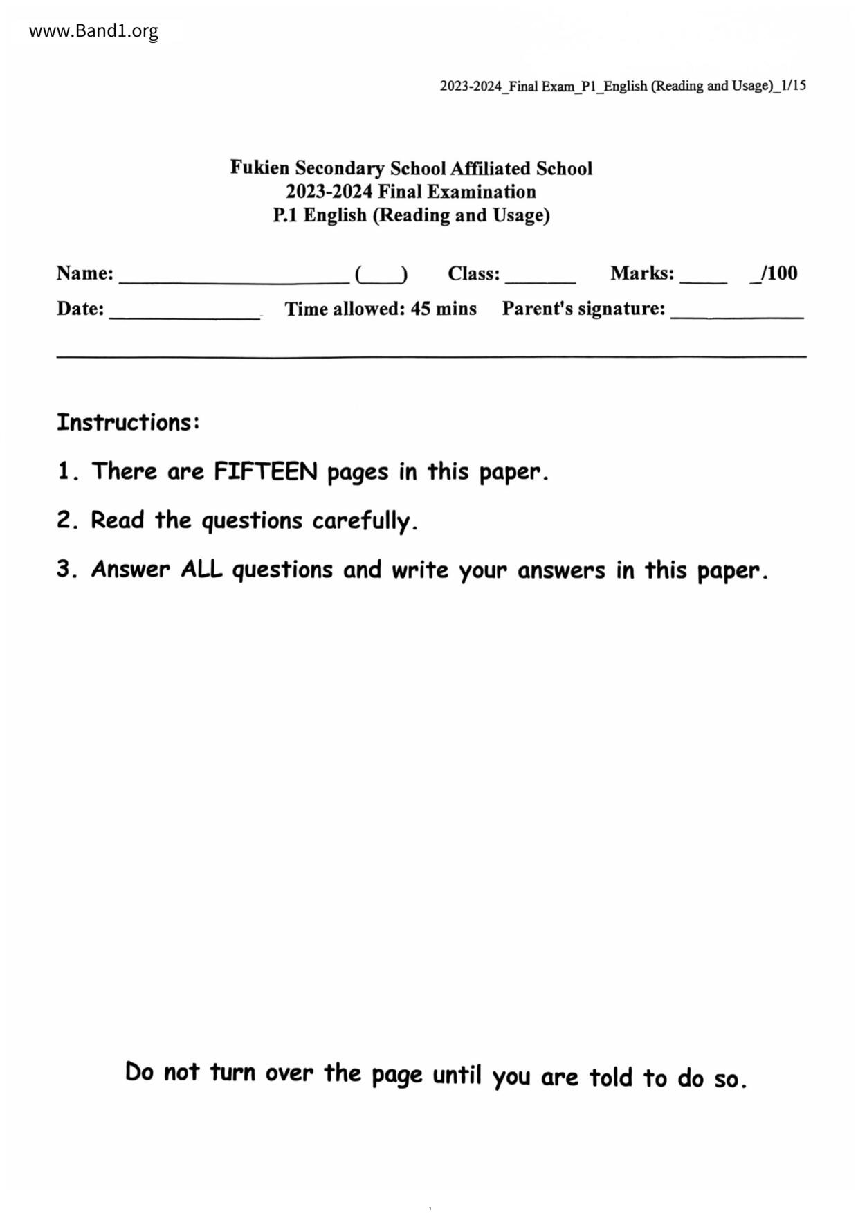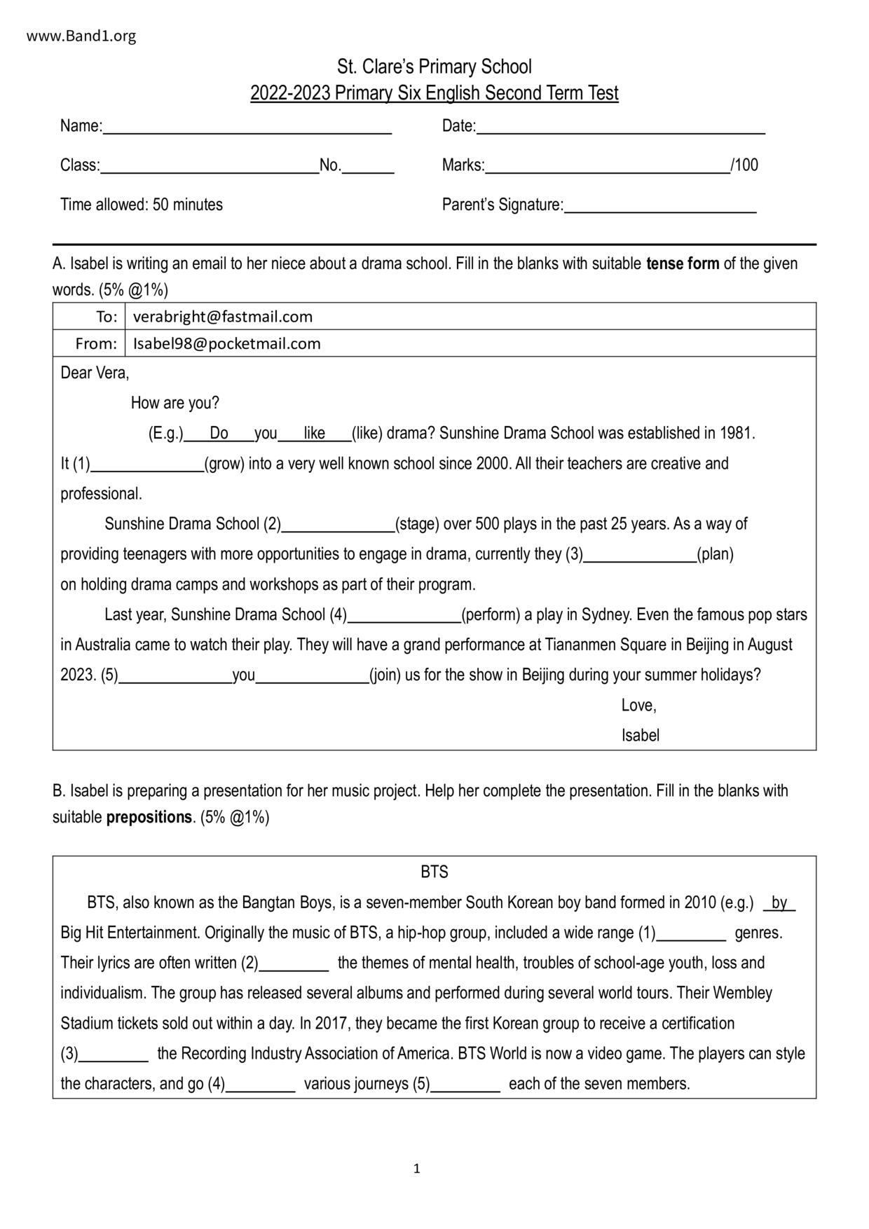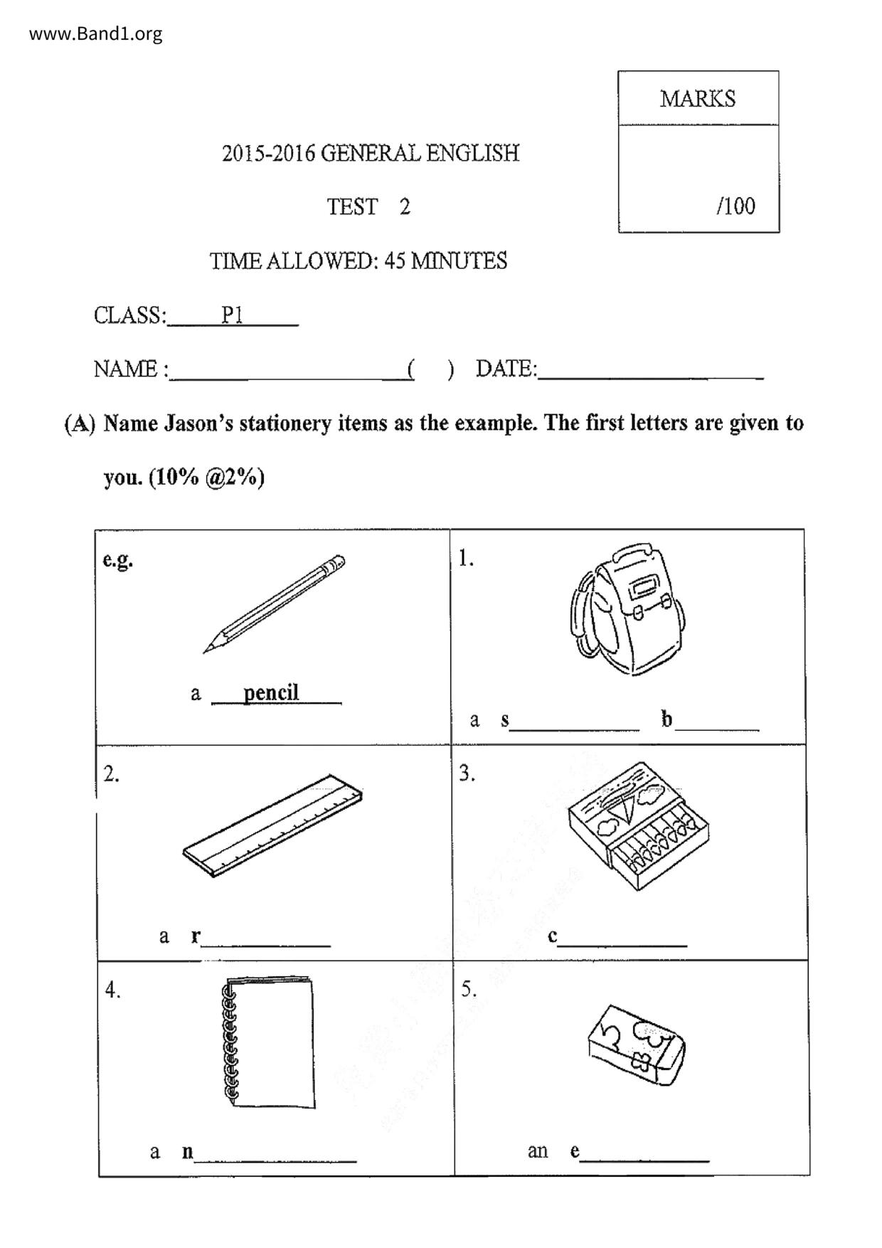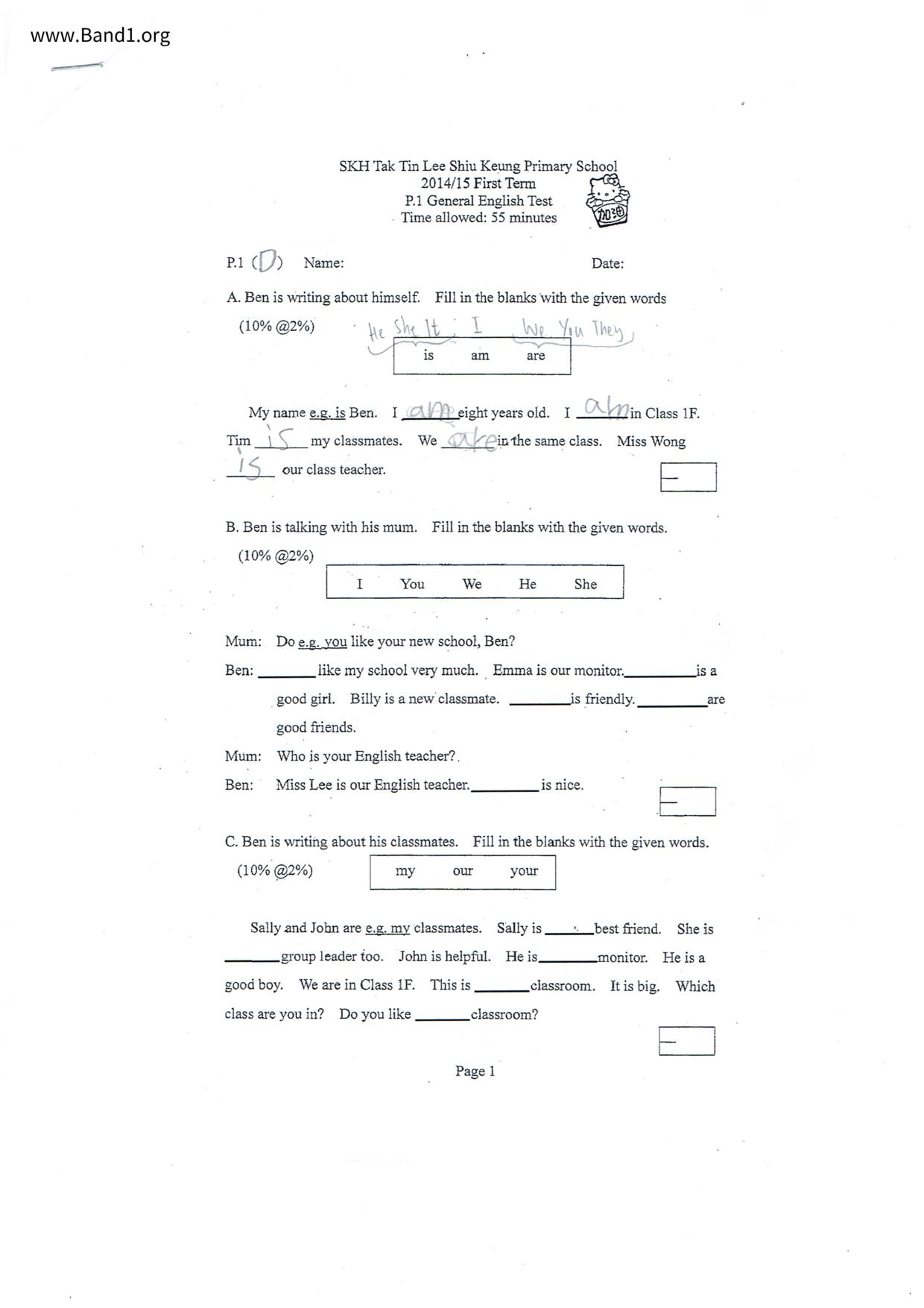 香港 中小學 英文 (HK English) 試卷 pdf