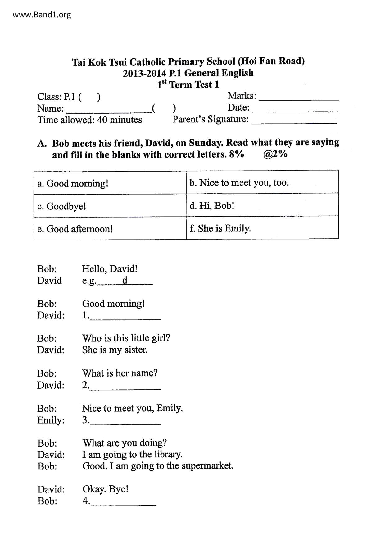 中六 英文 St. Francis of Assisi's English Primary School