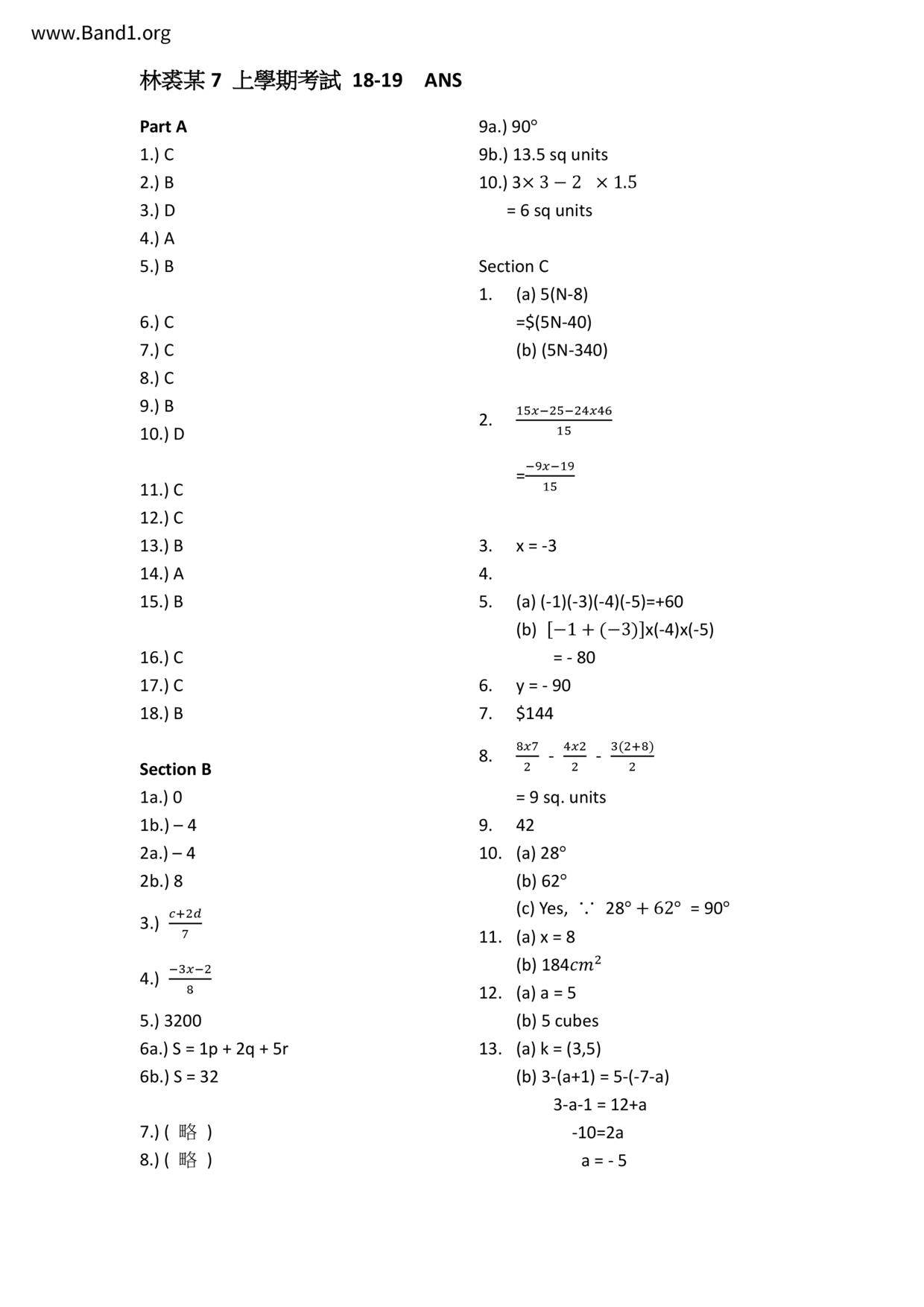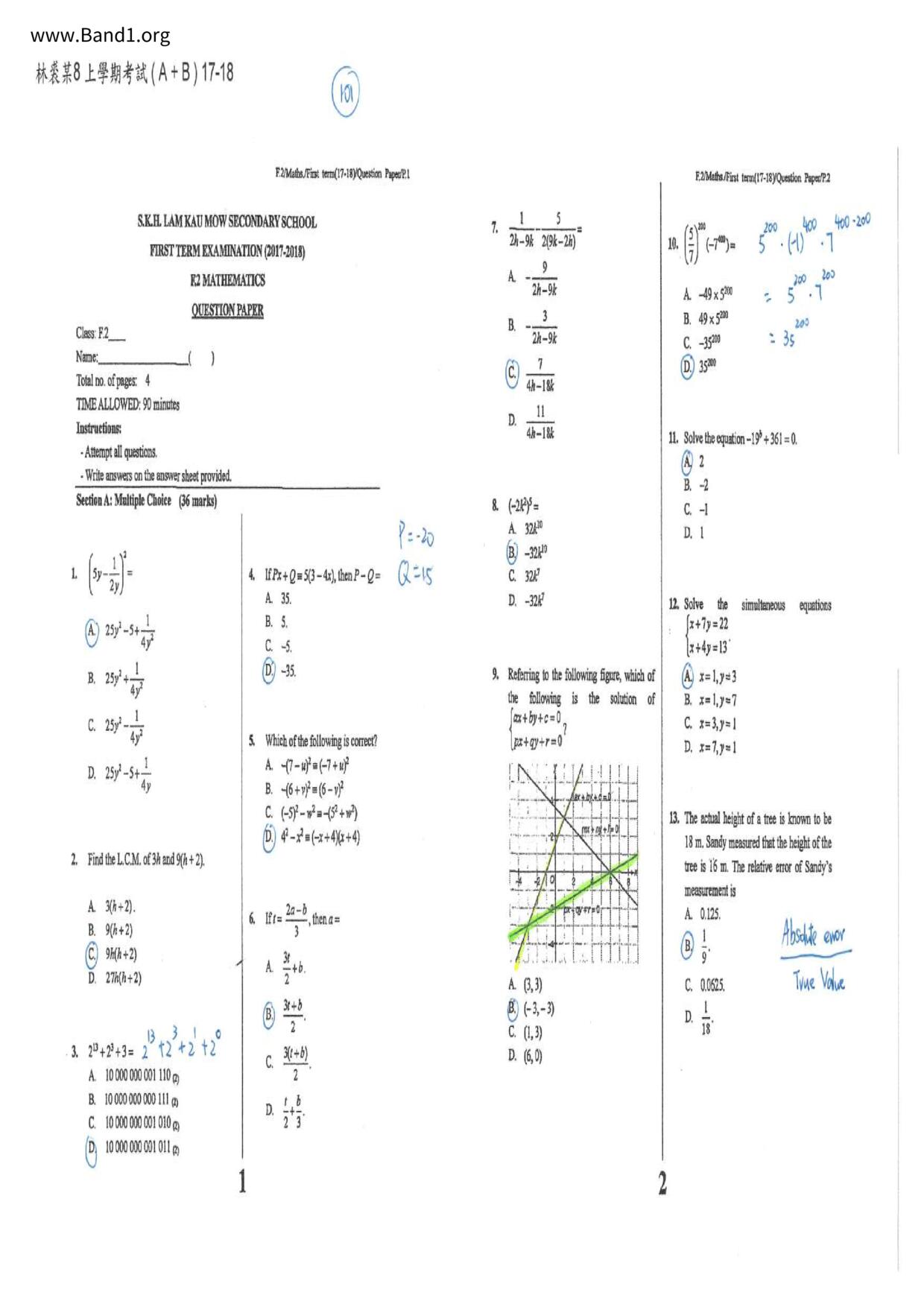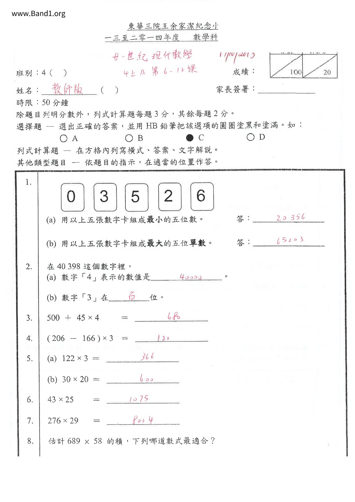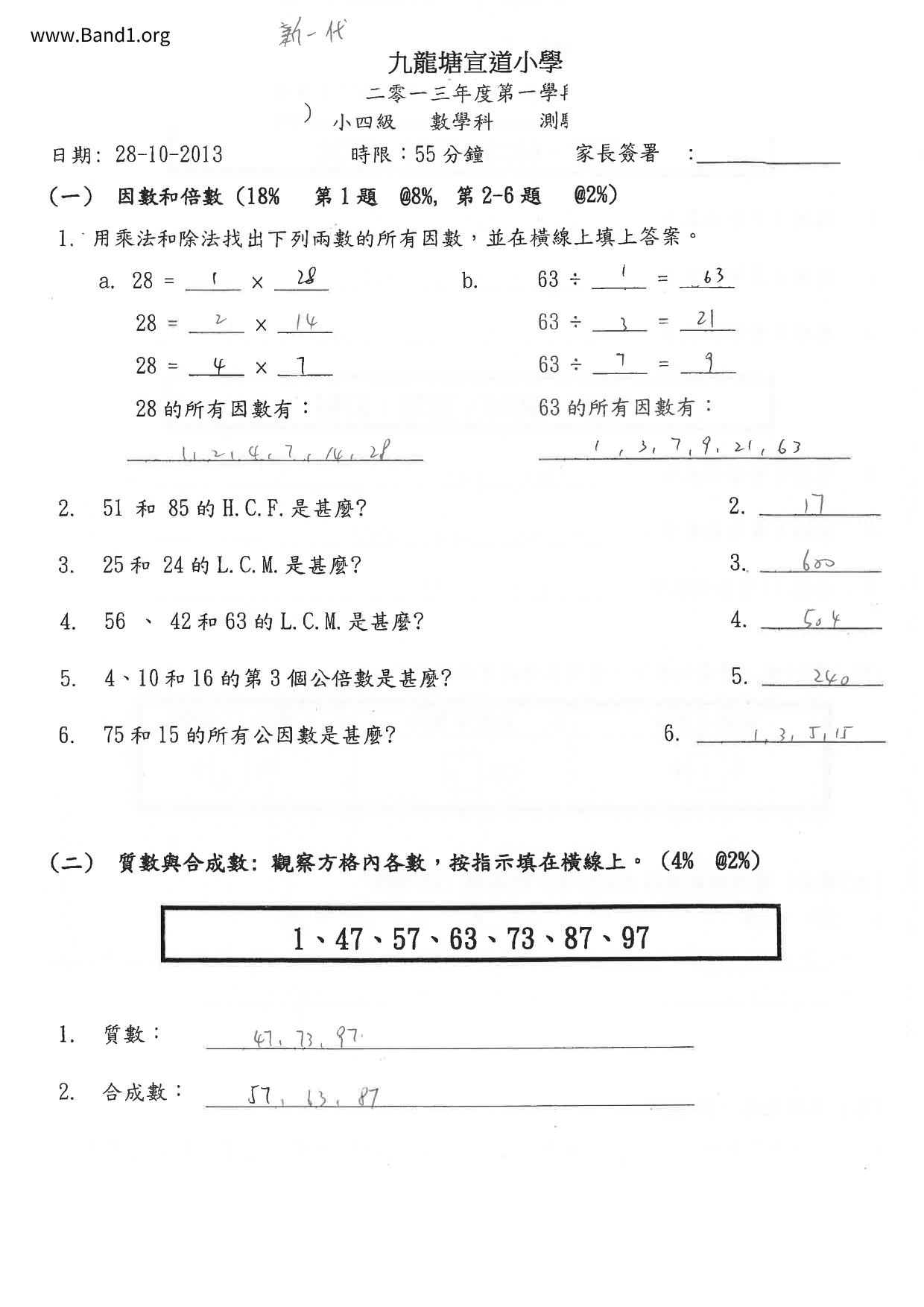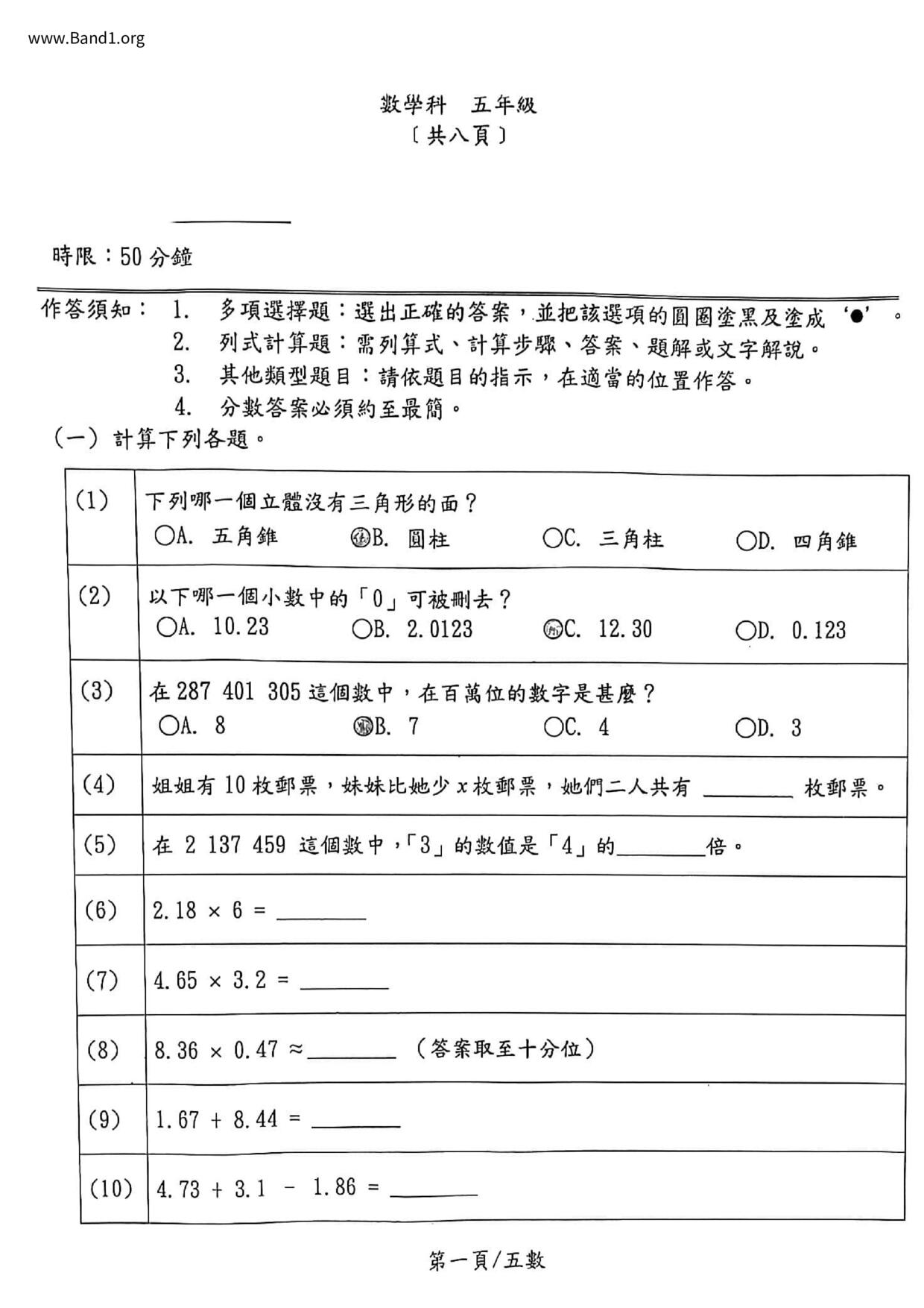 小五 數學 軒尼詩道官立小學(銅鑼灣)