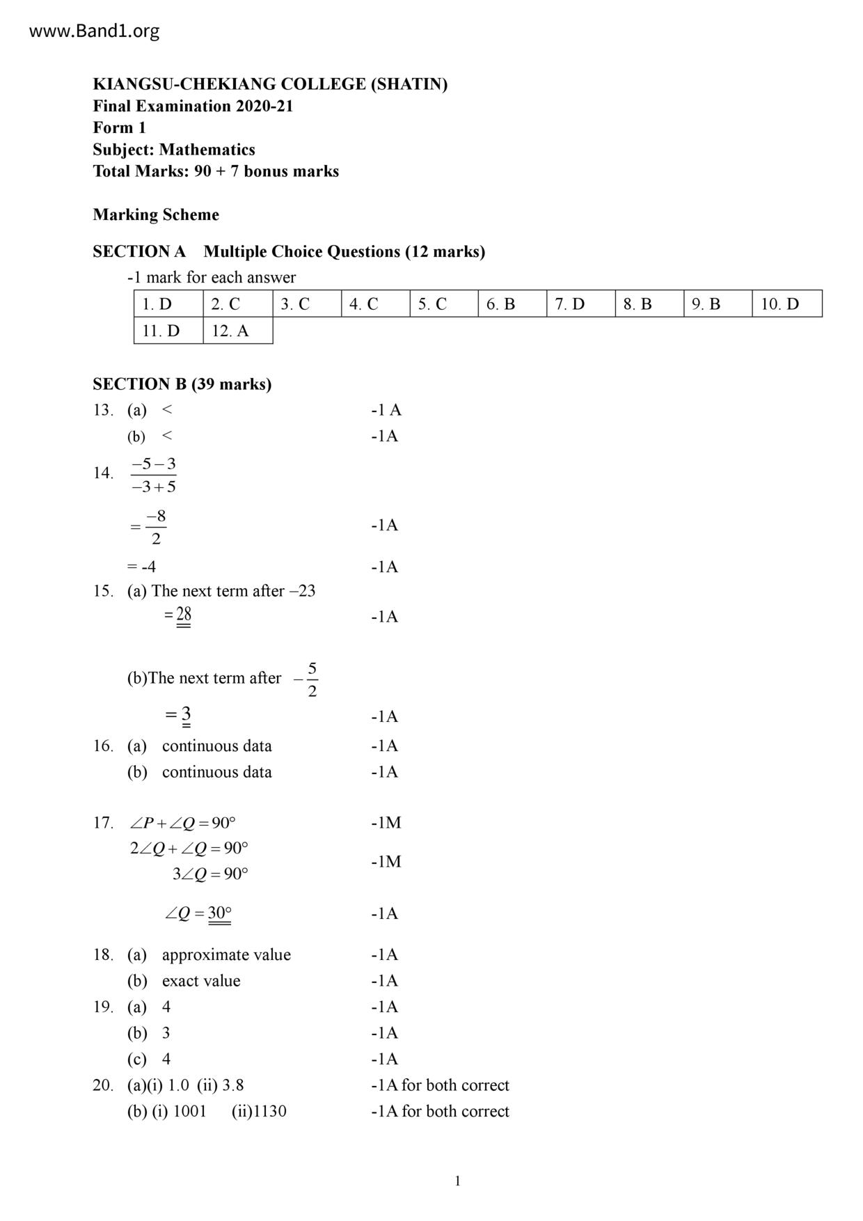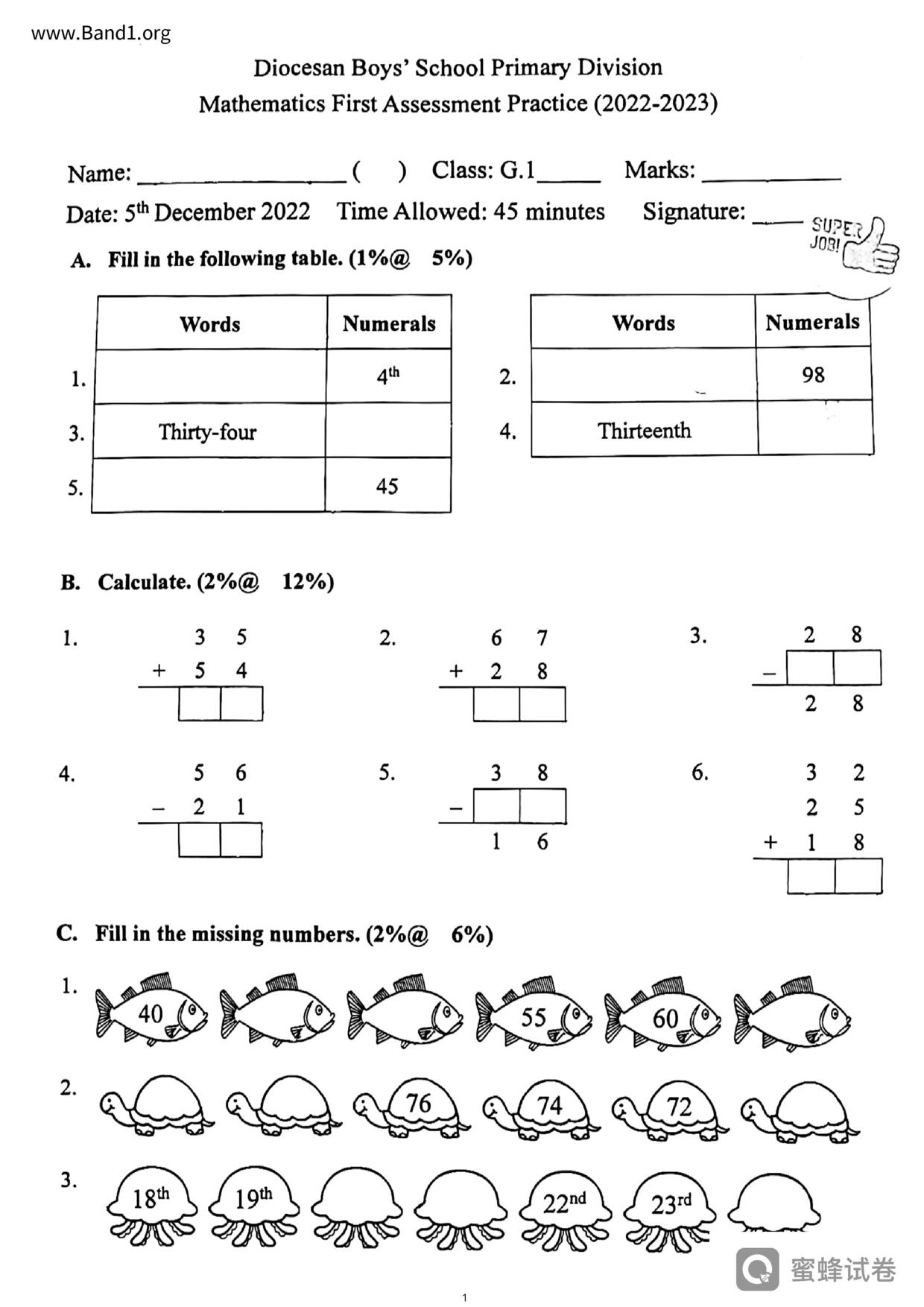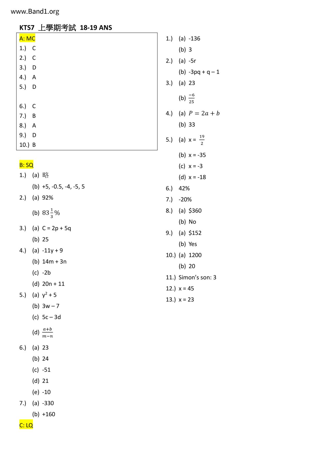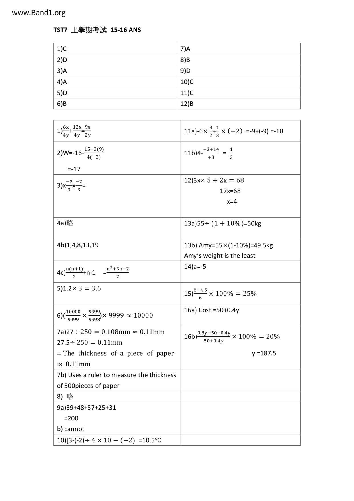 小五 數學 軒尼詩道官立小學(銅鑼灣)