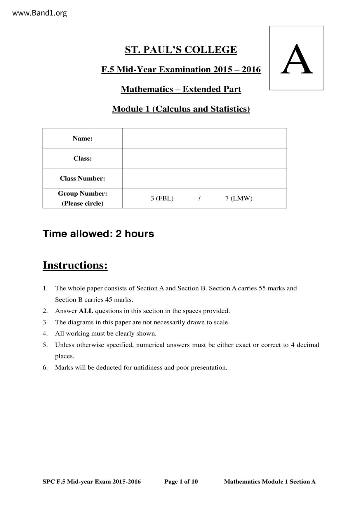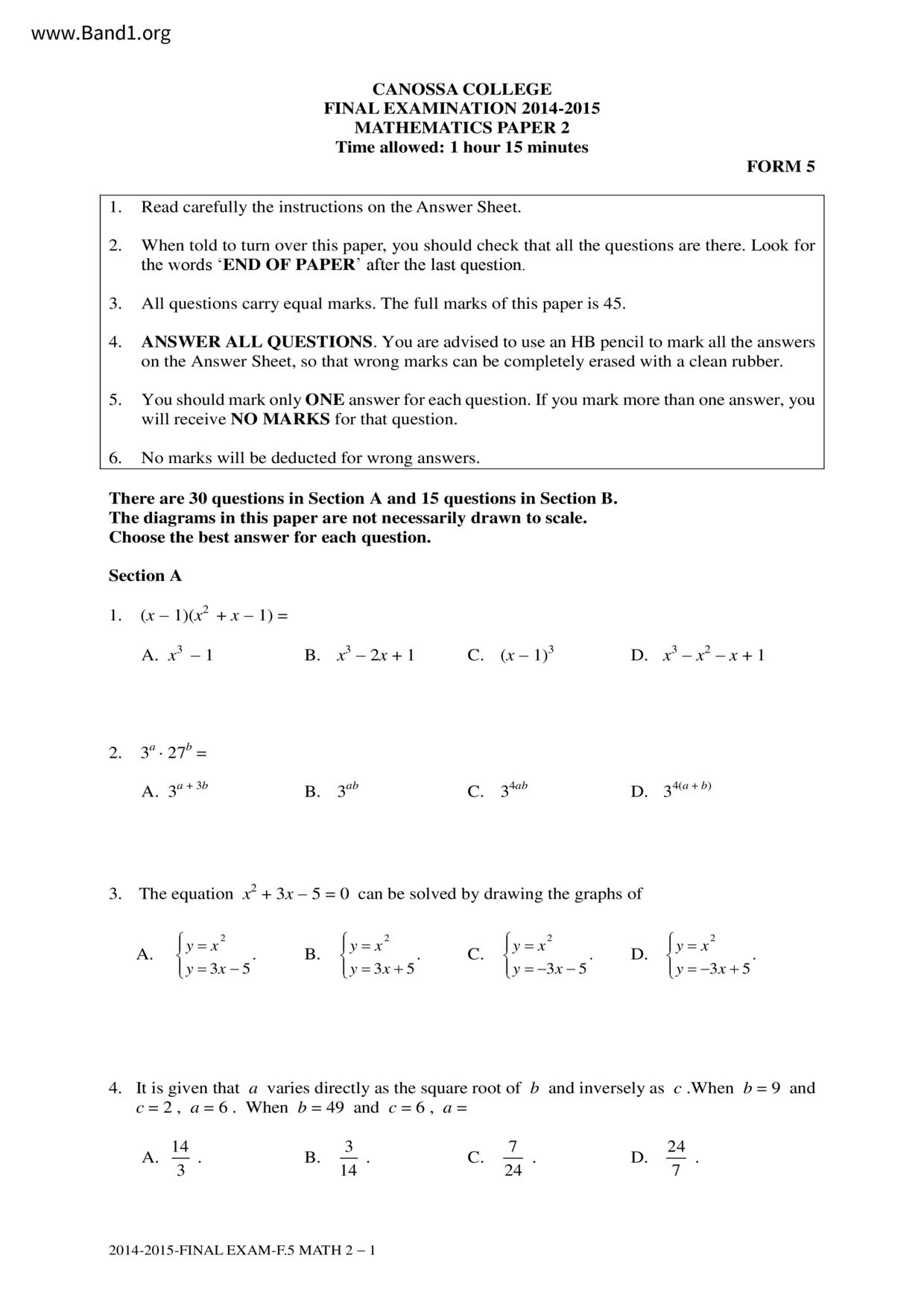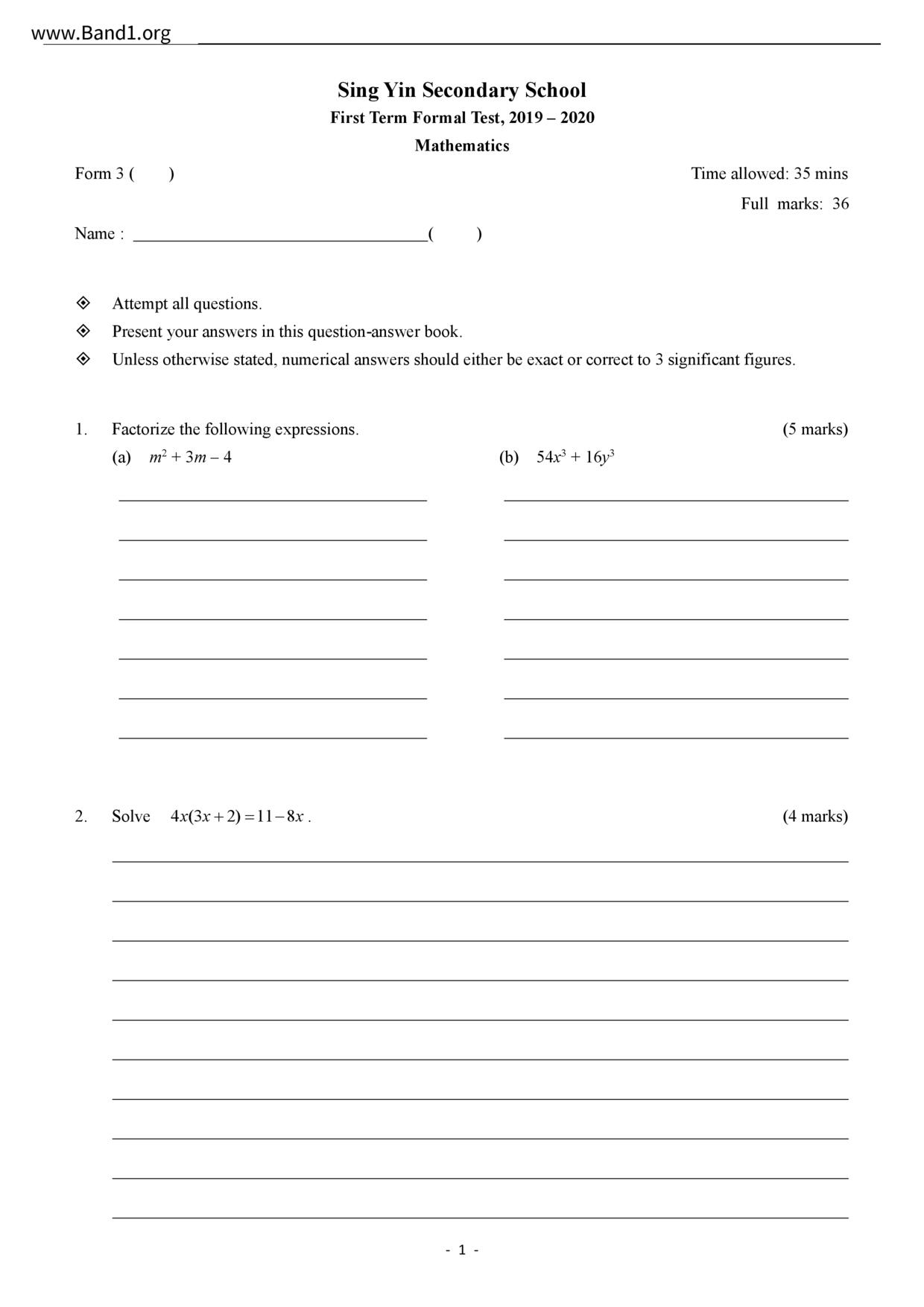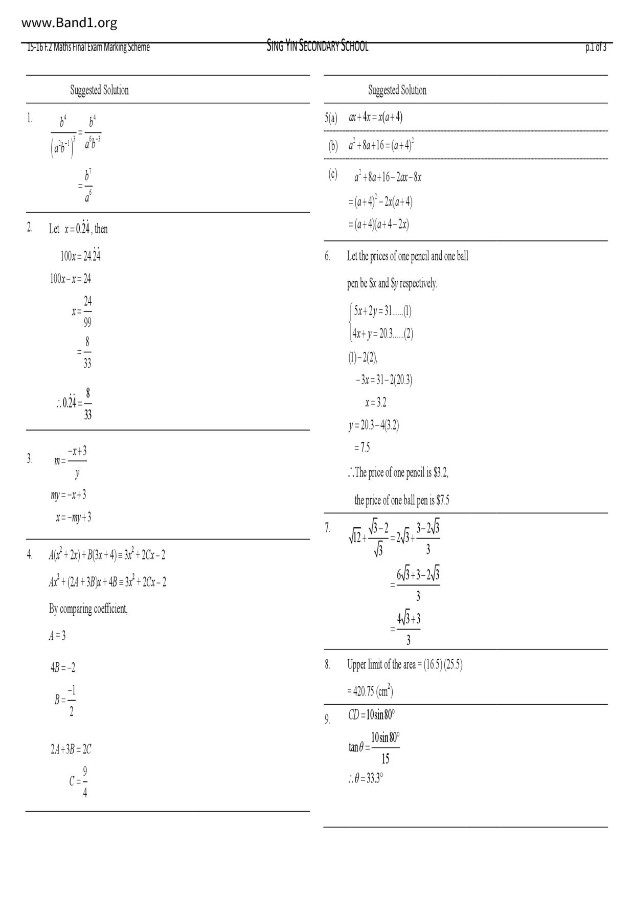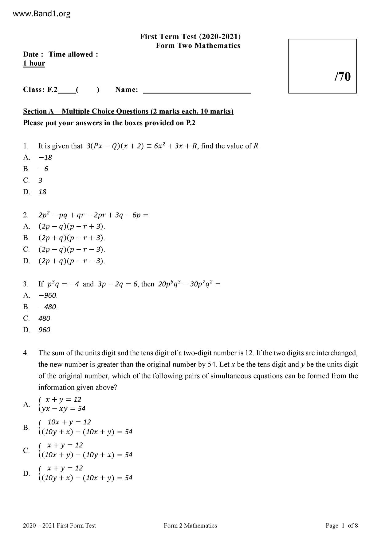 小五 數學 軒尼詩道官立小學(銅鑼灣)