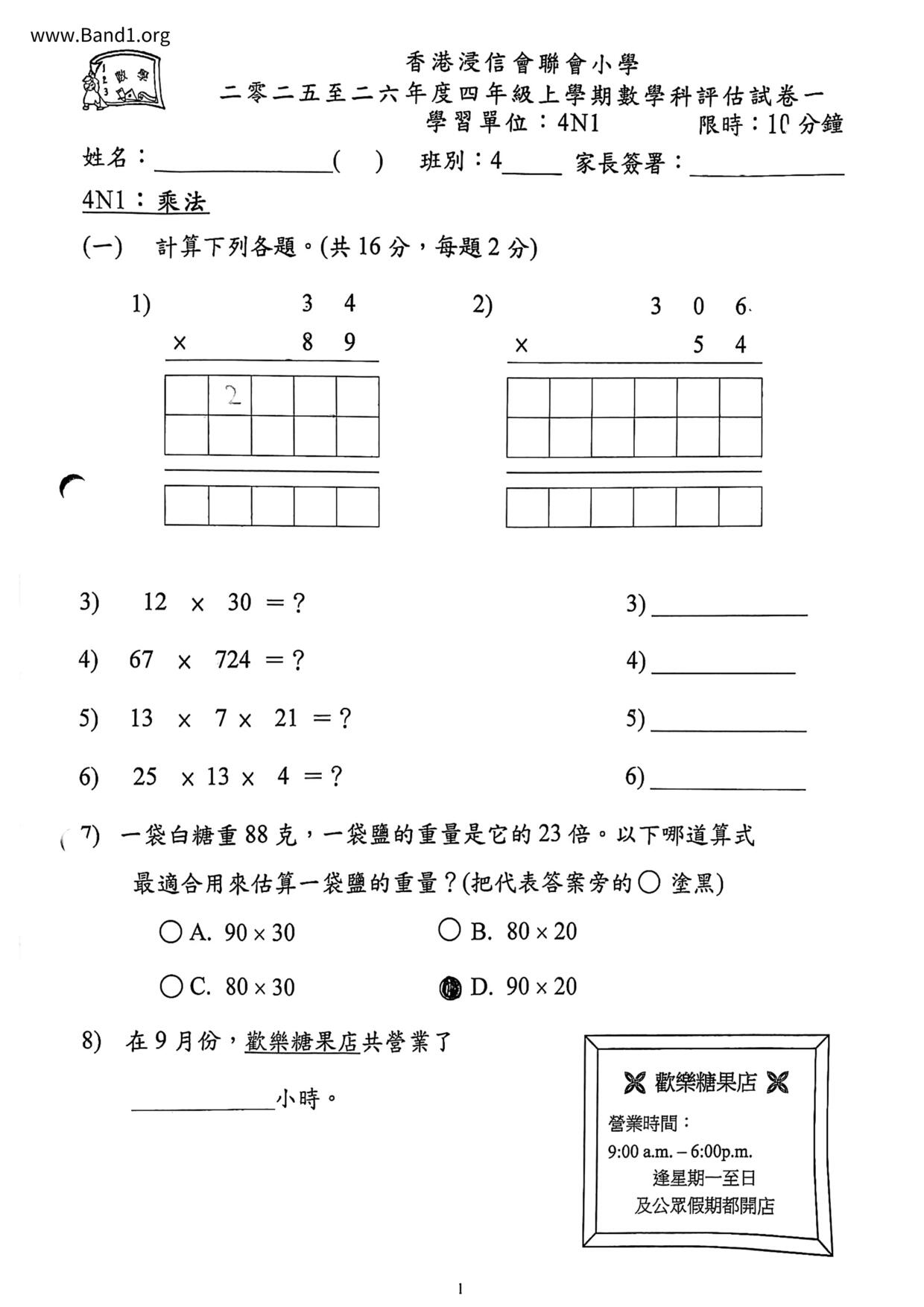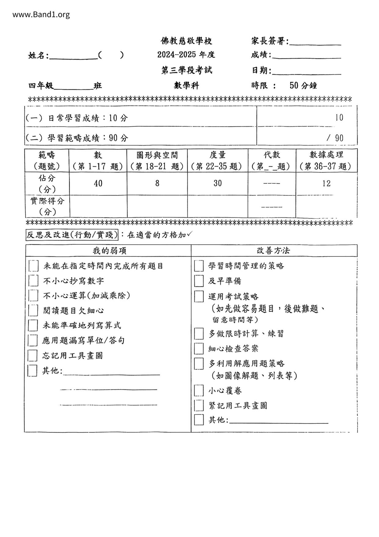 小四 數學 香港九龍塘基督教中華宣道會台山陳元喜小學