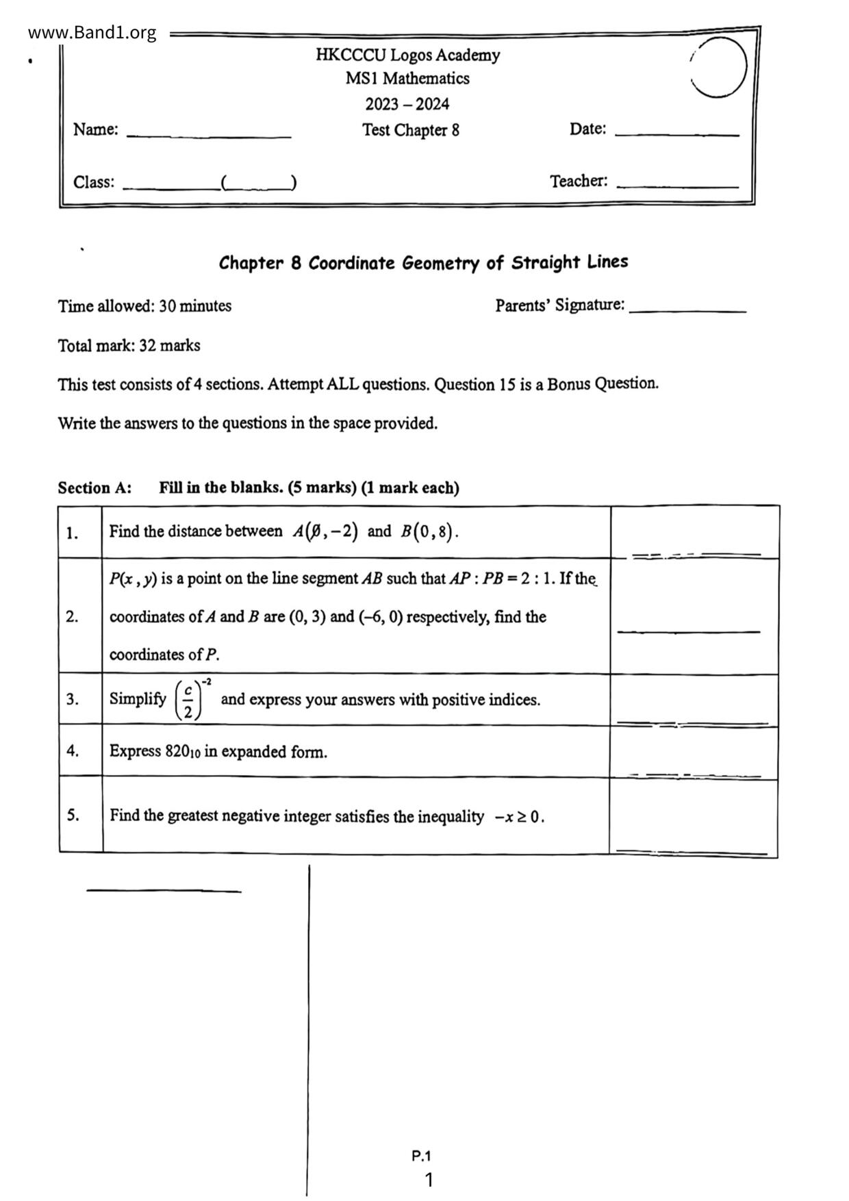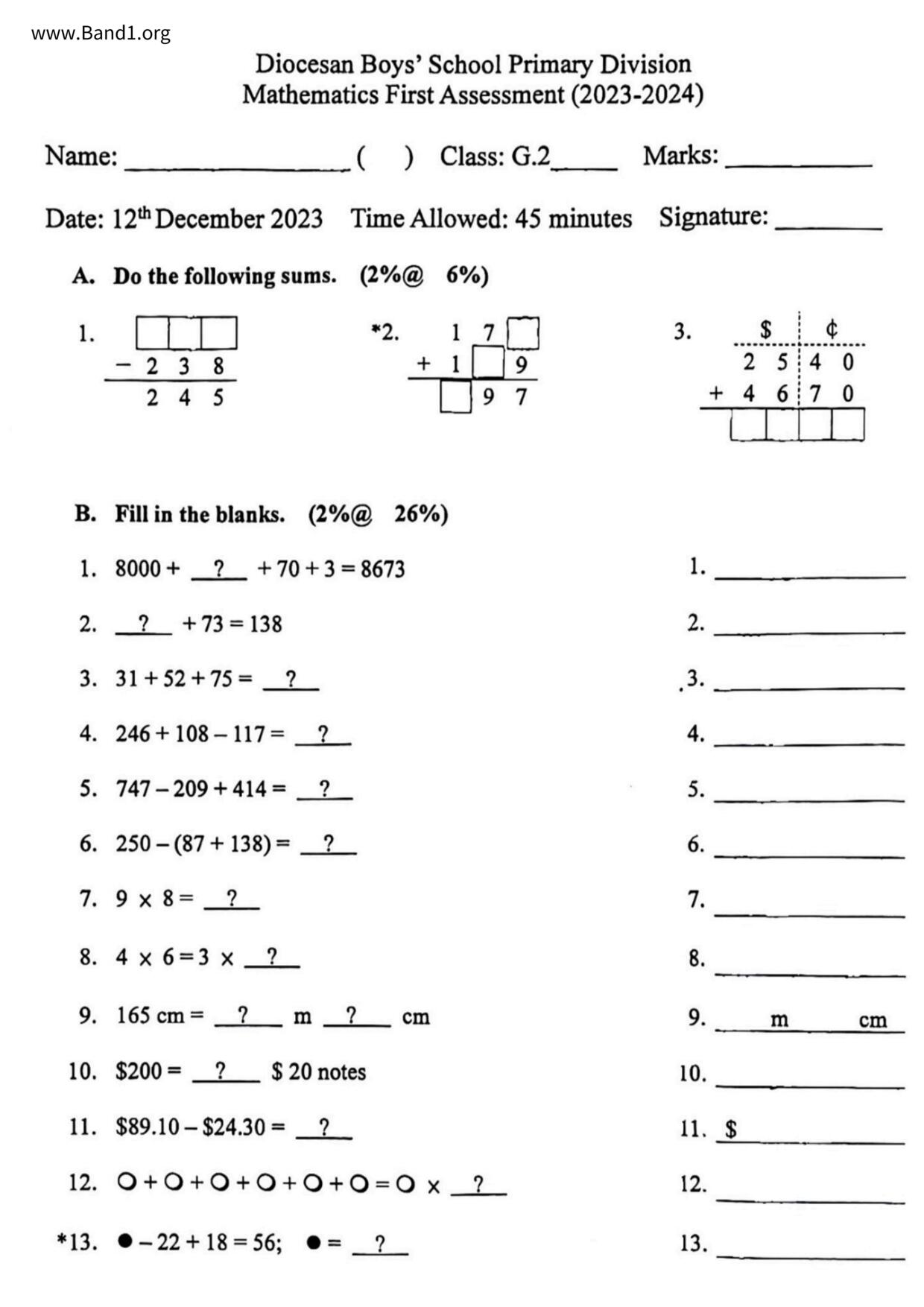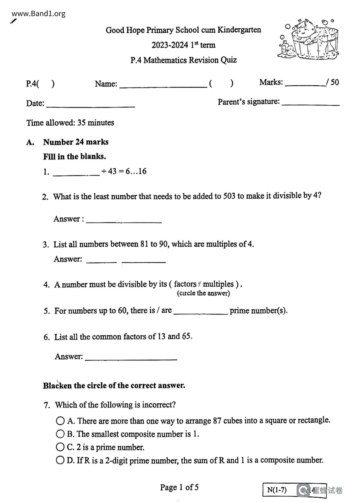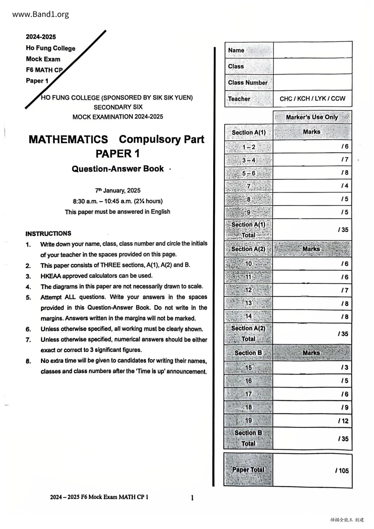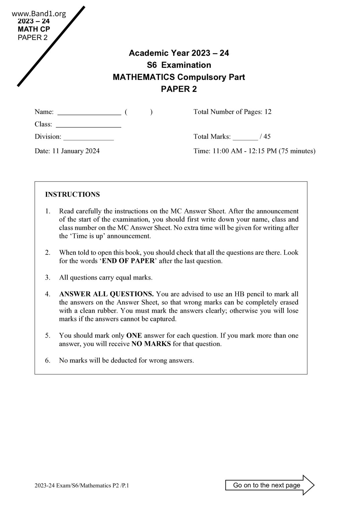 香港 中小學 數學 (HK Maths) 試卷 pdf